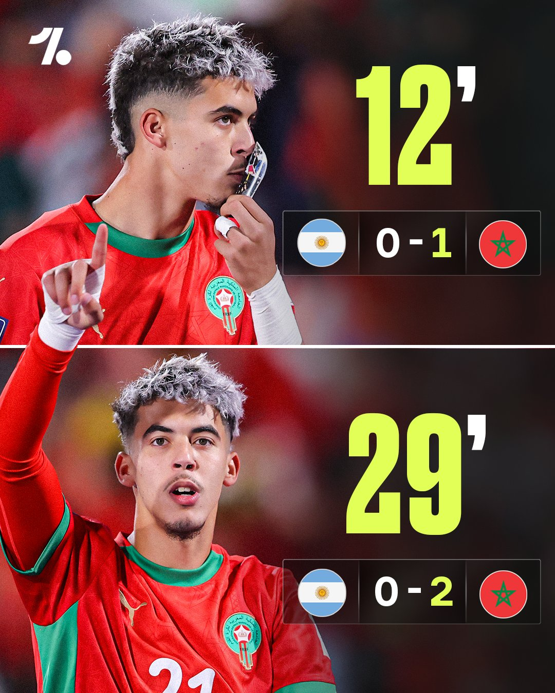 世青赛决赛,阿根廷u20以0比2不敌摩洛哥u20,摩洛哥首夺世青赛冠军,亚西尔-扎比里梅开二度!
