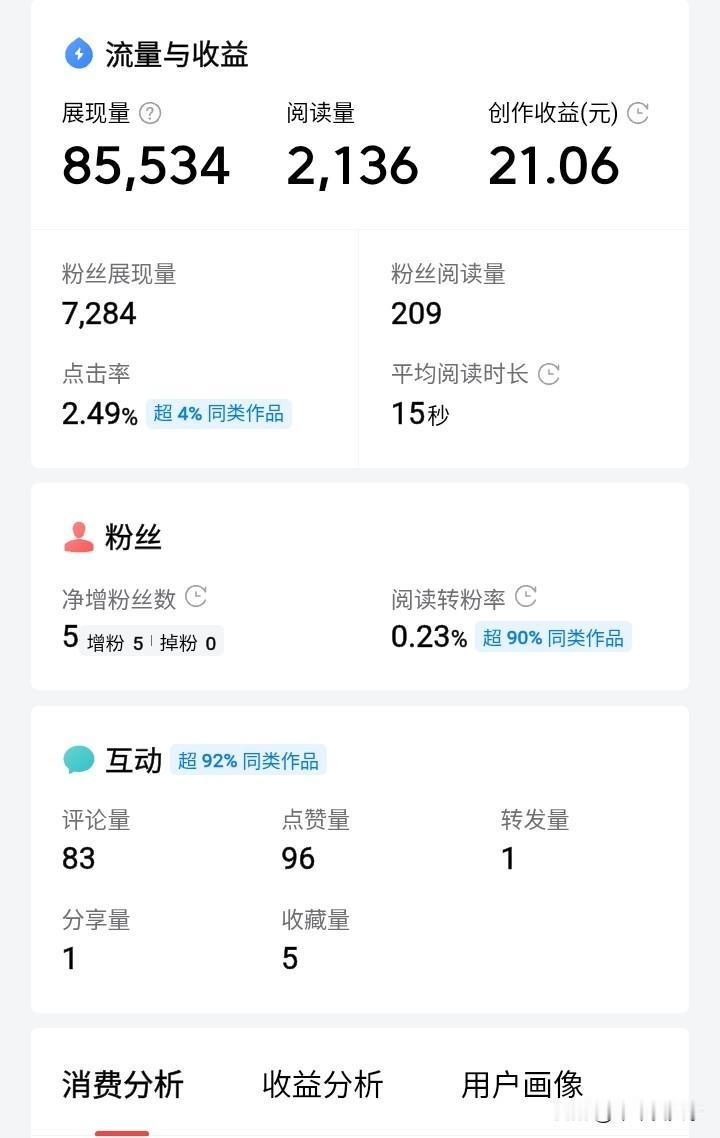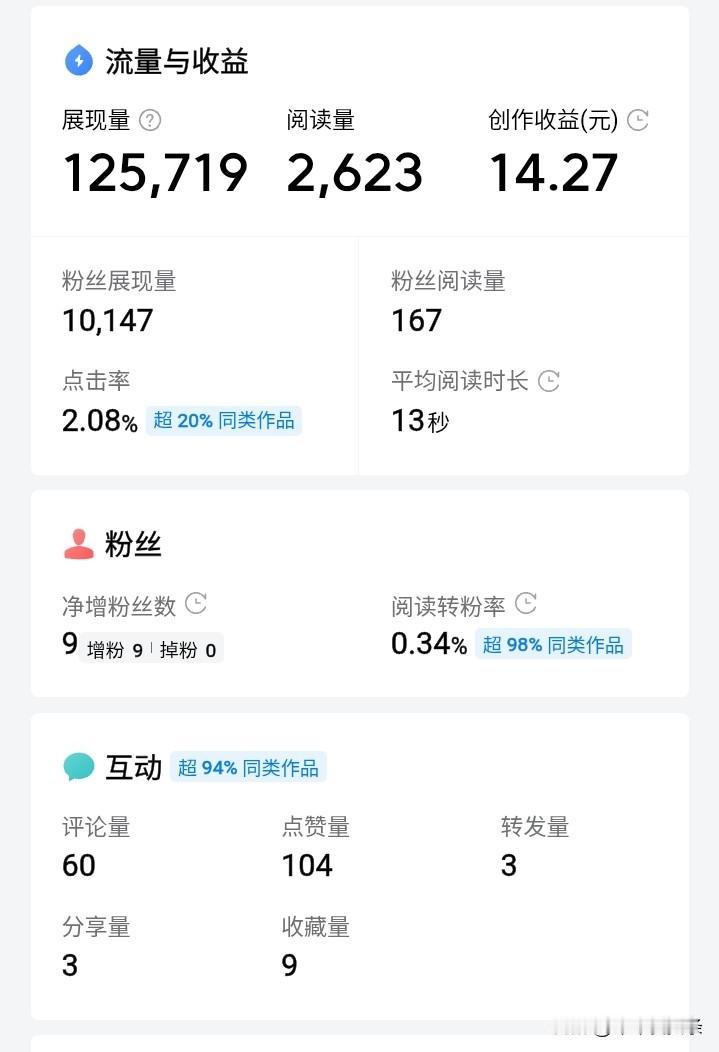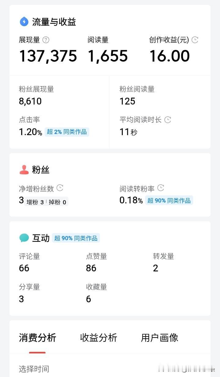 现在条君的阅读收益比以前涨了不少,以前10多万阅读量都没现在的千次阅读量高,不一样的阅读量,收益也各不相同,粉丝阅读量最重要,这样的阅读量收益,还是够吃一次早餐的。