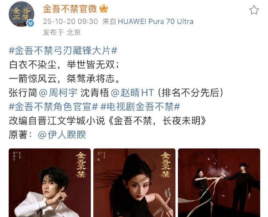 幸福来得太突然了吧,电视剧《金吾不禁》就这样官宣男女主了可还行,这也是赵晴和周柯宇的首次合作,周柯宇和赵晴在剧中平番,于正预热了这么久的顶级ip,这下终于可以放心了吧!