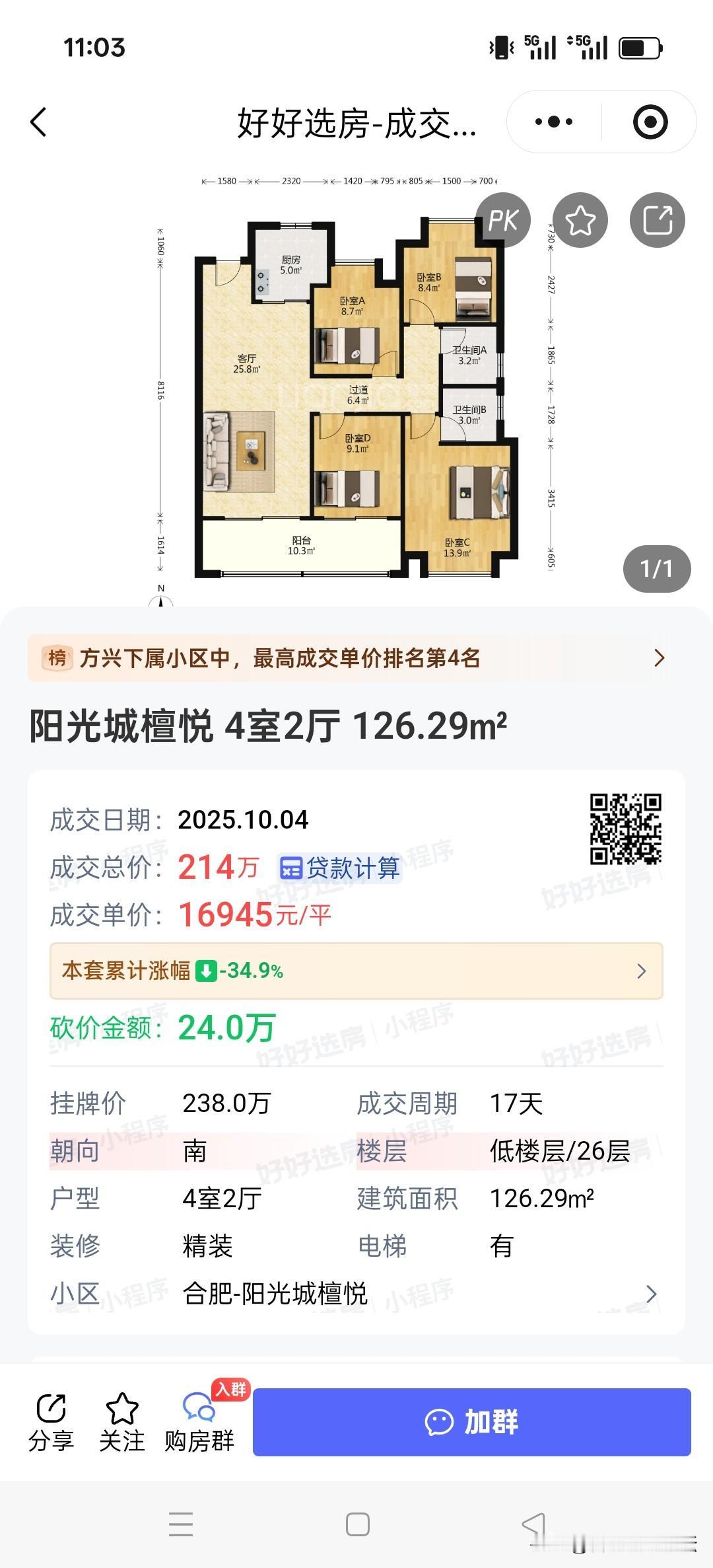 合肥最新一些次新房小区成交情况。 滨湖的阳光城檀悦单价一万六,铂锐天汇单价一万六