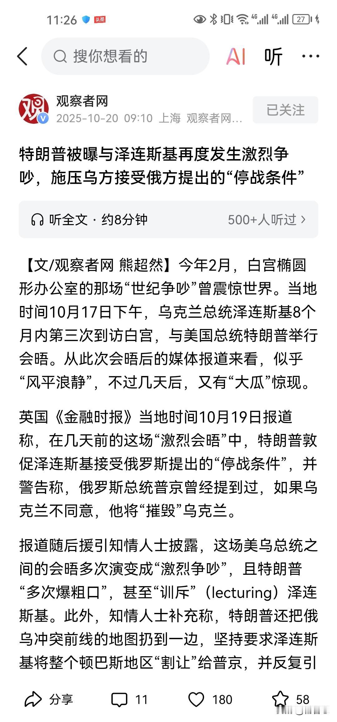 特朗普被曝与泽连斯基再度发生激烈争吵,施压乌方接受俄方提出的“停战条件”, 听说泽连斯基想要战斧导弹,老特不敢与普京撕破脸,估计懂王现在想向乌克兰总统府发射一枚战斧导弹了!事实证特朗普无论对内还是对外,无论对俄罗斯还是对乌克兰都是翻烧饼的性格。 历了这几年泽连斯基,泽连斯基已经不傻了,甚至在政治悟性方面比特朗普更“老道”些,只是特朗普沾着美国实力的光而已。 如今乌克兰败局已定,泽连斯基现在选择投降,里子面子全丢,不仅会被乌克兰自己清算,全世界也没人愿意保他。 反倒是硬挺,以“乌克兰的失败就是整个西方阵营的失败”做挡箭牌,摆烂坐等欧美托底,把责任推给欧美。欧美继续管下去,泽连斯基就扮演最坚定的反俄先锋,这股势力就会庇护他。欧美如果不管,俄罗斯全盘通吃,那么这几年欧美在俄乌战场的投入就打了水漂,泽连斯基照旧用反俄斗士的身份警示欧洲“绥靖政策”造成的惨败,反俄势力依然会庇护他。 所以泽连斯基不会对特朗普松口,特朗普要的是政绩,泽连斯基要的是命。 只是苦了乌克兰老百姓。