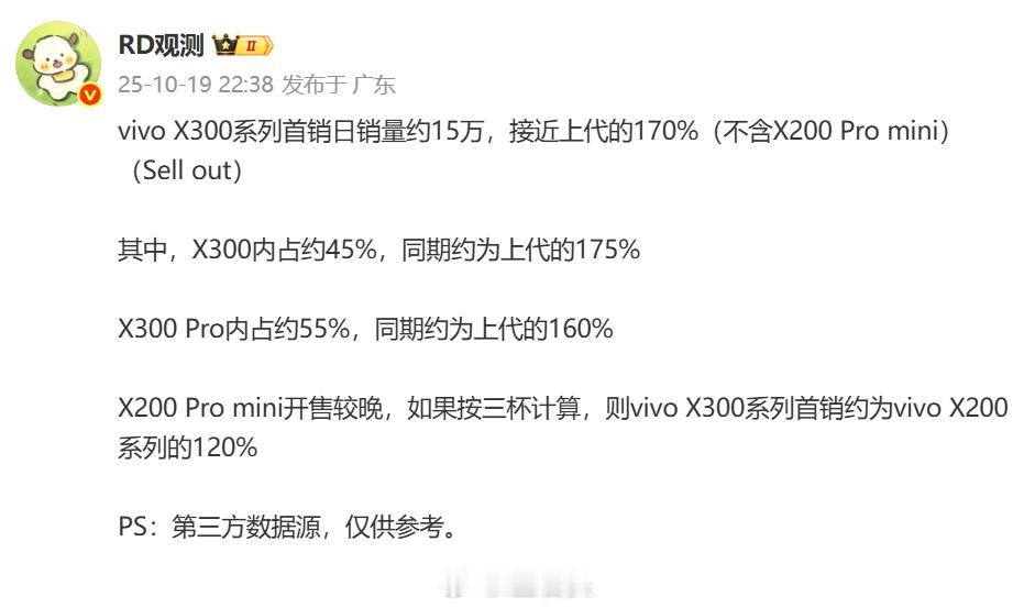 vivo X300系列 两杯销量超越X200系列三杯销量!