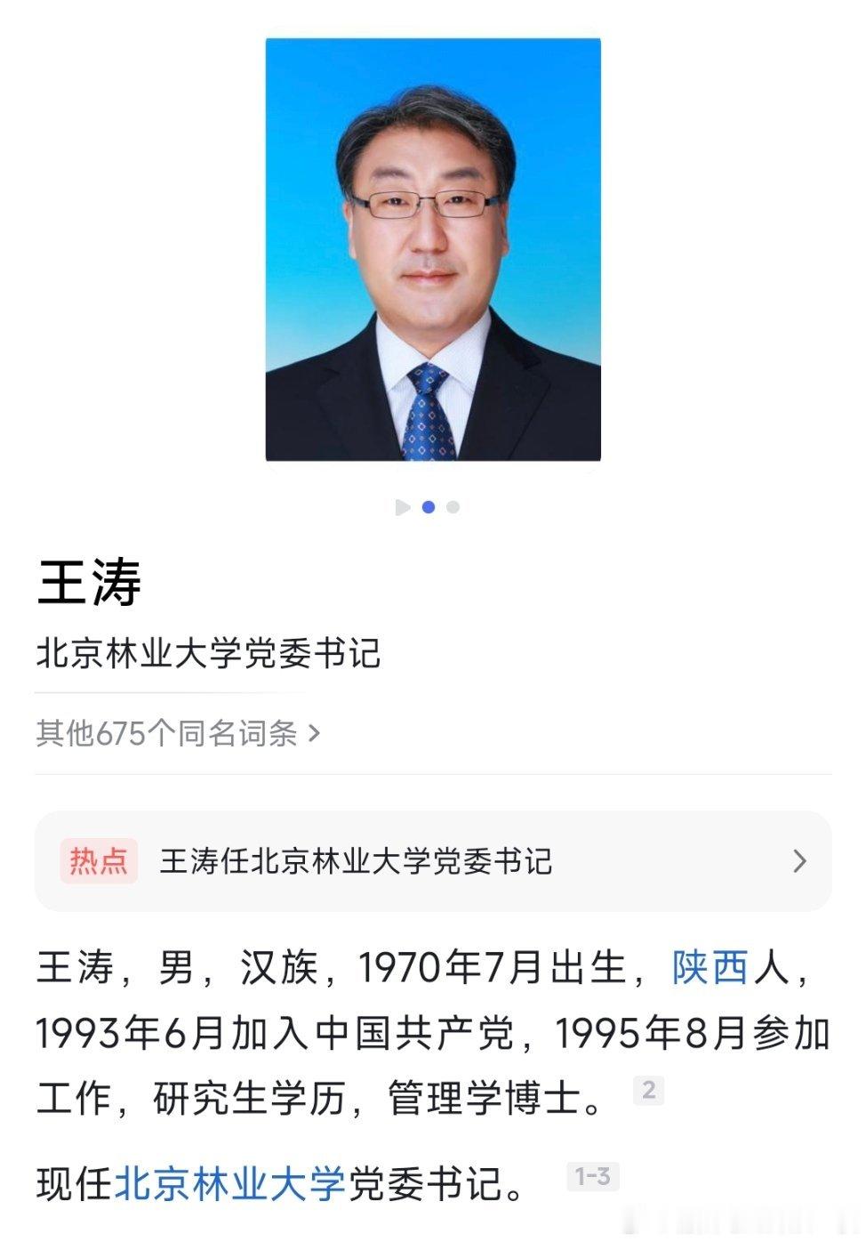 王涛任北京林业大学党委书记。热点现场