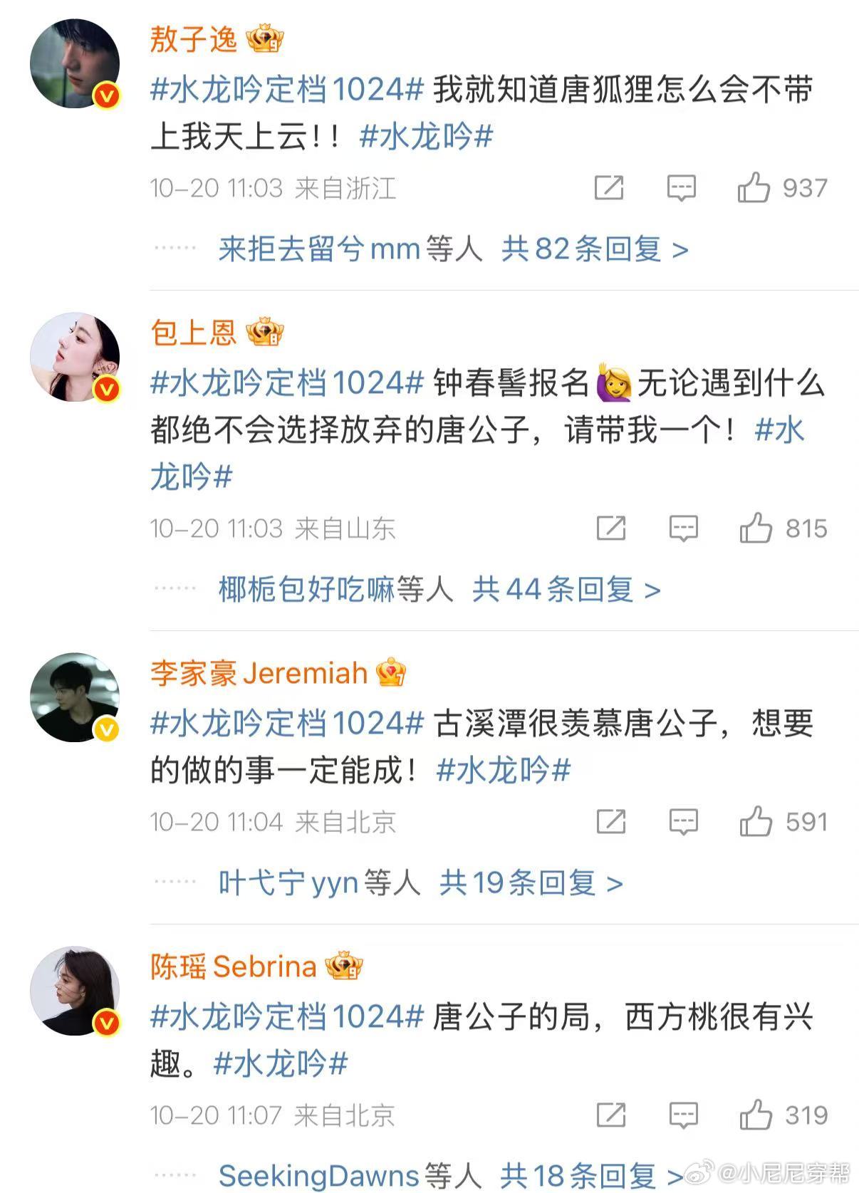罗云熙[超话]罗云熙一呼百应的江湖排面罗云熙评论区好多人啊评论区热闹得像江湖盛会!全是冲唐俪辞来的,果然是一呼百应~10月24日18点,《水龙吟》江湖等你!