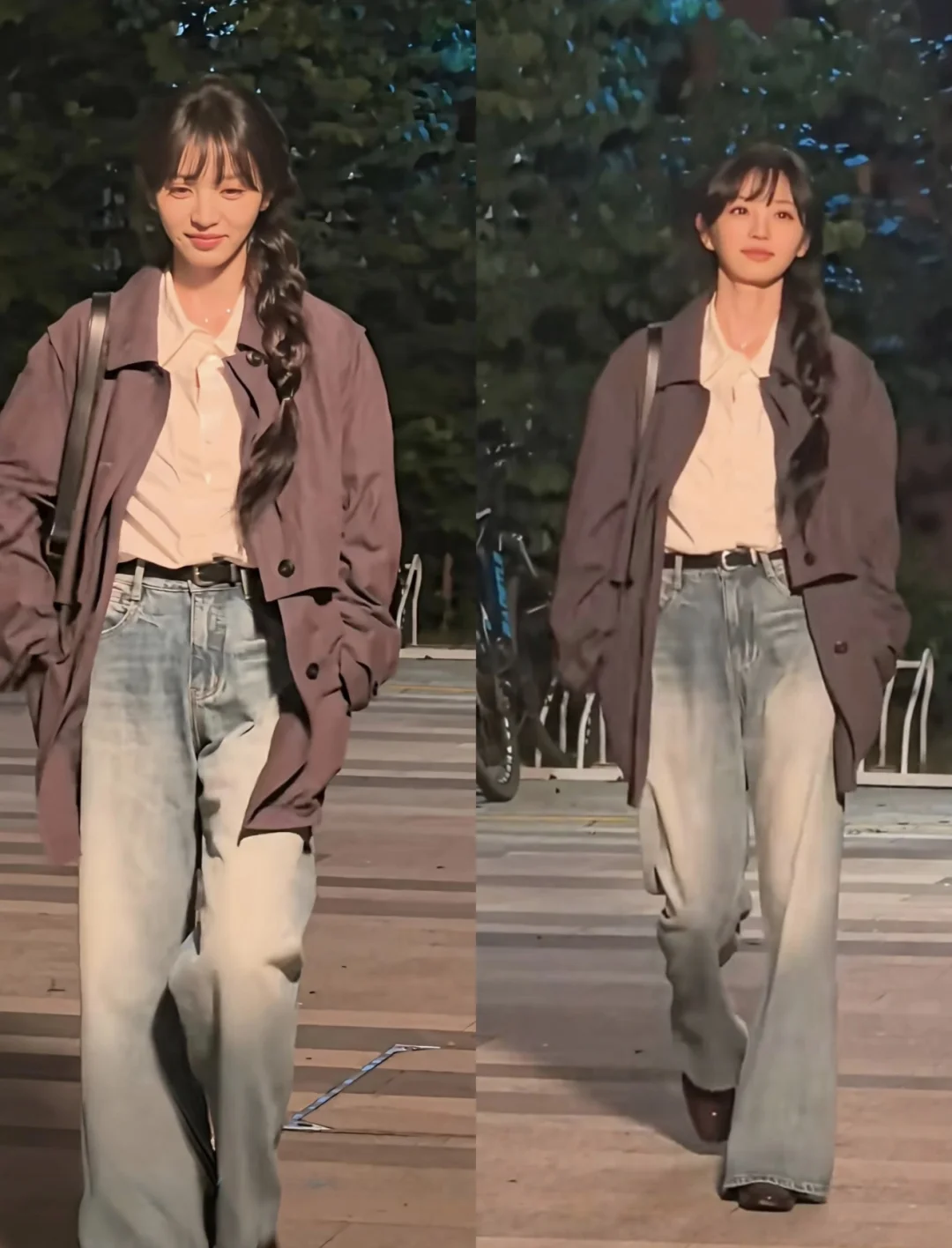 白衬衫+超模裤清爽利落;灰色风衣+浅蓝色超模裤很有秋天萧瑟又浪漫的感觉;黑色针织搭深蓝色微喇裤,好御姐的一套啊!小田的穿搭公式可以照搬!太适合打工人通勤穿搭了,简单气质~
