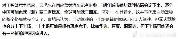 曹旭东预测城区智驾竞争明年就要出大结局了,中国可能就剩两三家[并不简单]