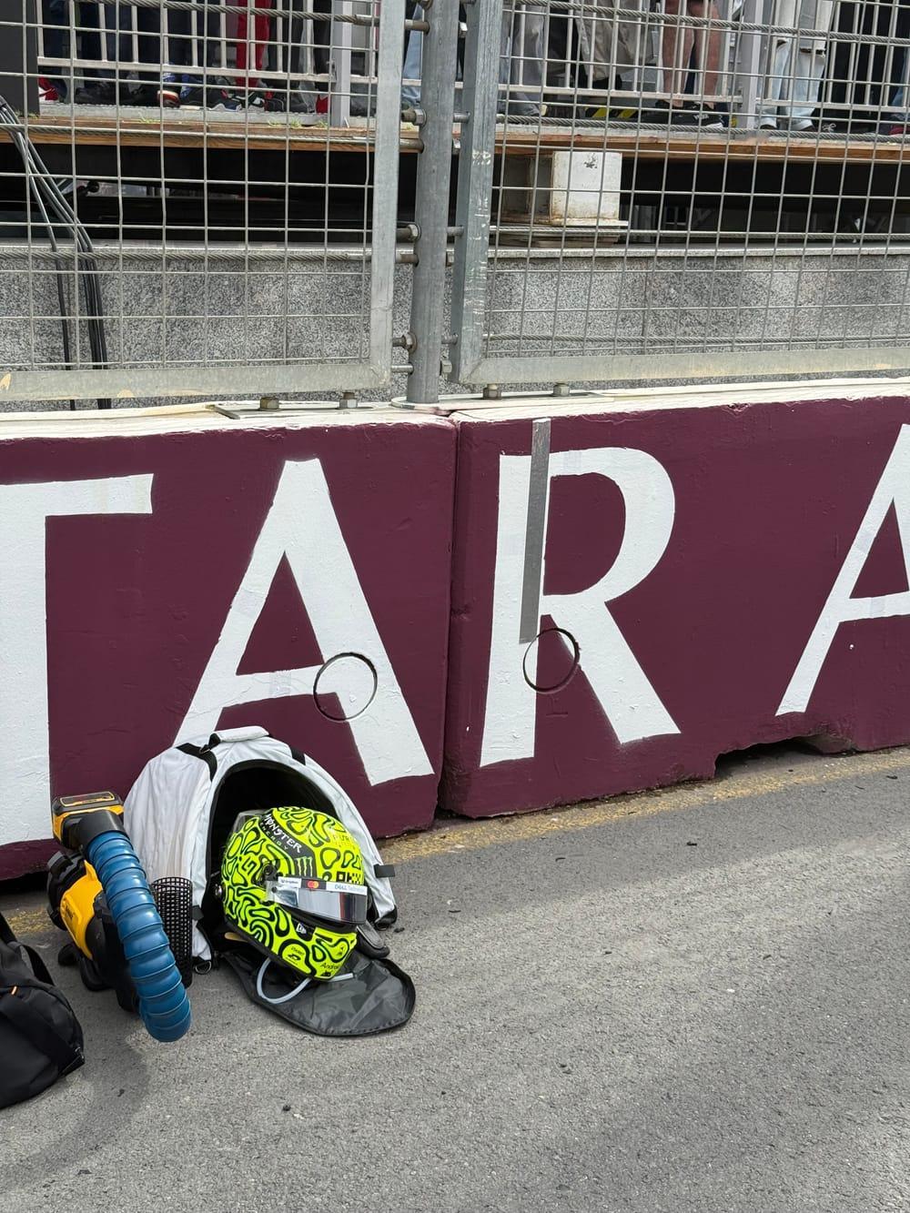 迈凯伦车队长期在诺里斯发车格旁边的墙面上使用胶带作为视觉标记,帮助他在发车格内对齐位置。这通常包括迈凯伦在赛前程序中尽可能将诺里斯的赛车向前停放在发车格内,随后根据诺里斯的偏好调整胶带位置。