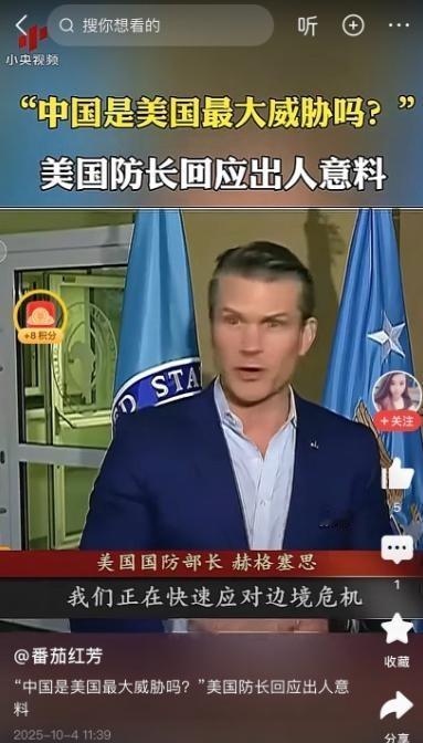 美国官方语气变怂!美国战争部长赫格塞斯终于说了一句清醒的话;记者问他,现在美国最大的威胁是不是中国?他立刻否认,他说——不是,美国最大的威胁是来自于美国边境。 赫格塞斯上任没多久,就在2025年2月11日的新闻会上公开表态,说美国最大威胁不是中国,而是南部边境。这话一出,媒体炸锅,因为之前美国国防策略一直盯着中国崛起,现在突然转向自家问题。 资料显示,他强调边境线长达三千多公里,过去一年拦截非法移民超170万,其中多数来自墨西哥和中美洲,还有从厄瓜多尔、海地等国来的。2023年12月单月就抓了22.5万,创纪录。 边境设施超负荷,2021年无人陪伴未成年移民达1.55万,死伤人数也高,2021财年557人丧生,比前年翻倍。实际数字可能更多,因为沙漠和河流穿越时很多人失踪。赫格塞斯指出,这些移民进入后挤占资源,非法居留者达1260万,900万在底层工作,压低工资,抢本地人饭碗。 合法渠道等20-30年,逼人走黑路,形成恶性循环。他这话说白了,就是承认外部威慑没用,先守好家门。这和特朗普政府的美国优先政策挂钩,转移视线从国外到国内。 这番话不是随便说说,背后是美国移民问题的积重难返。搜索权威资料如国土安全部报告,边境拦截数字逐年上升,2024年更突破纪录。 移民潮不只经济因素,还有政治动荡和气候问题推动。海地移民在2021年德尔里奥桥下聚集1.5万,设施崩溃,人道危机频发。赫格塞斯作为部长,最清楚国防部如何支援边境巡逻,部署军队辅助海关。 政界两党为此撕扯,共和党推主权优先,在得州拉铁丝网,用装甲车运移民到民主党城市捣乱;民主党建庇护城市,不配合驱逐。政策摇摆不定,2025年特朗普想定义非法移民为国家入侵者,快速驱逐,却被法官叫停,最高法院调解。 民调显示,82%共和党人视移民为头等大事,民主党也有39%。赫格塞斯这话戳中痛点,提醒大家外部叫板前,先稳住内部,不然国家根基动摇。