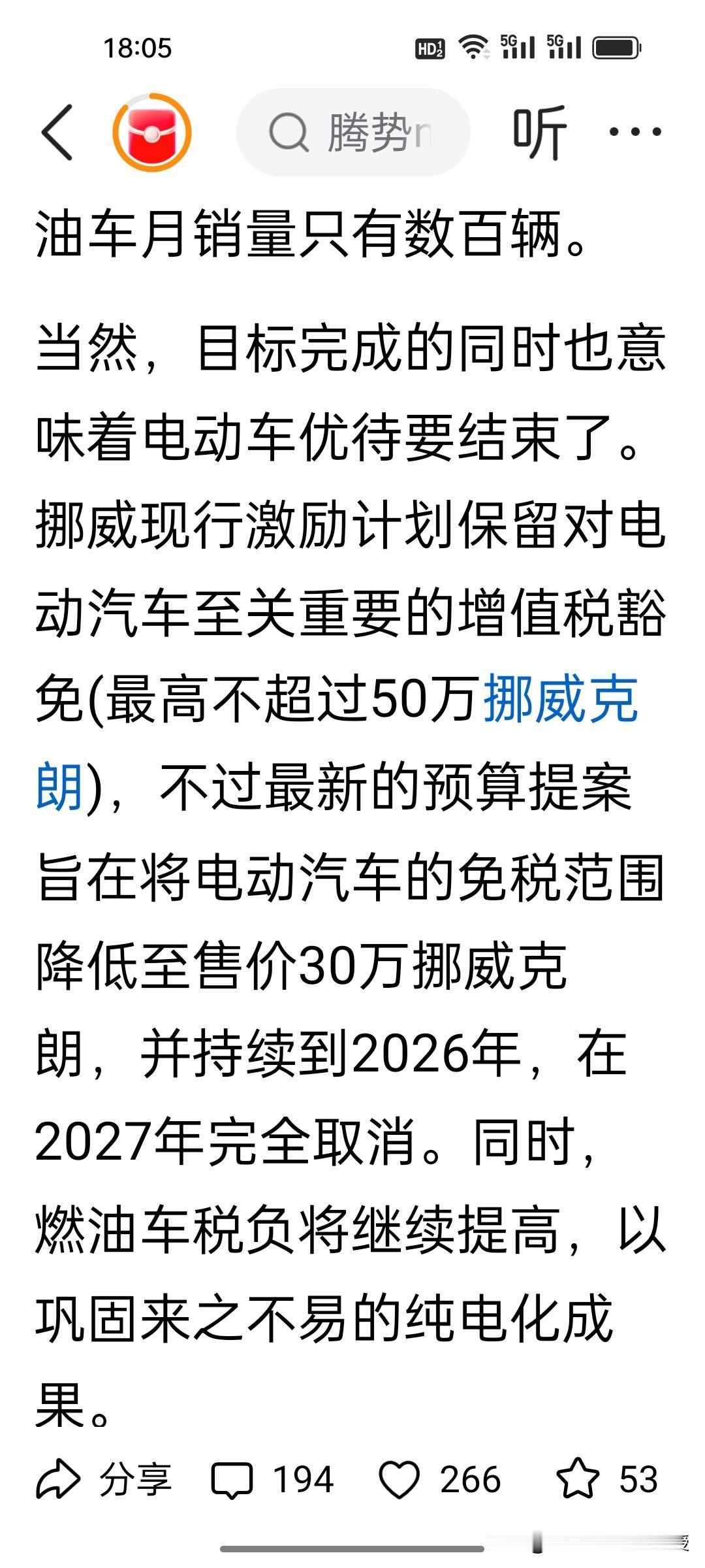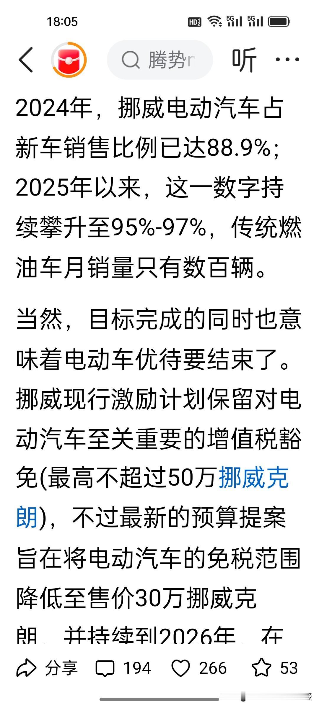 挪威在发展电动汽车方面还是很有魄力的,现在已经是全世界首个完成全电动车转型的国家,目前挪威市场上电动汽车销售已经占比高达97%。 在挪威市场,特斯拉是电动汽车市场销售份额最大的品牌。9月,特斯拉销量达4829辆,占比33.7%。今年上半年中国品牌乘用车在挪威新车销量中的占比达到12.3%,比亚迪占比最高,达到4.1%。 但网友担心挪威的冬天北部可能温度会降到-40℃下,电池续航或缩水30%-50%,充电速度也降三成。那里的充电站必须充足,要不然排队到晚上充电都充不完。 挪威目前已找到解决极寒天气下,电动汽车面临问题的解决办法,那就是车企预装热泵与柴油加热系统,可远程预热电池与座舱;研发自修复电池优化低温性能,衰减率或控在10%内;充电桩适配极寒,运维响应提速60%,缓解补能焦虑。 之前,长城汽车魏总说电动汽车只是过渡,燃油汽车才是生活必需品,今年以来也有不少车企重新生产燃油车,国内燃油车销量已经连续四个月正增长,可是,周鸿祎表示未来可能没人买油车,电动汽车将占据市场主导地位 。 大佬们面对电动汽车未来发展的观点不尽相同,这背后实则是短期需求与长期趋势的碰撞——燃油车凭借稳定可靠仍占据特定市场需求,而电车在技术突破与政策引导下主导未来方向,短期内“油电并存、按需选择”或将是市场常态。