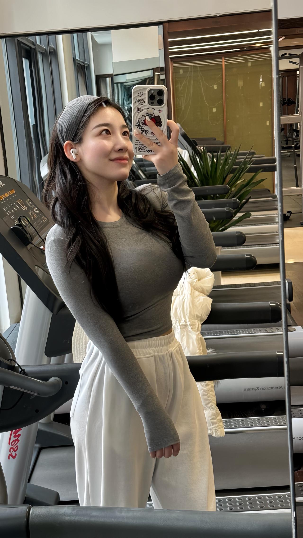 健身女孩 唯有训练不可辜负 身体和灵魂总有一个在路上 健身拍照两不误 爱健身爱生