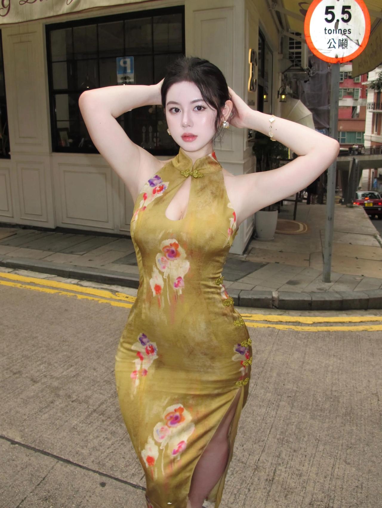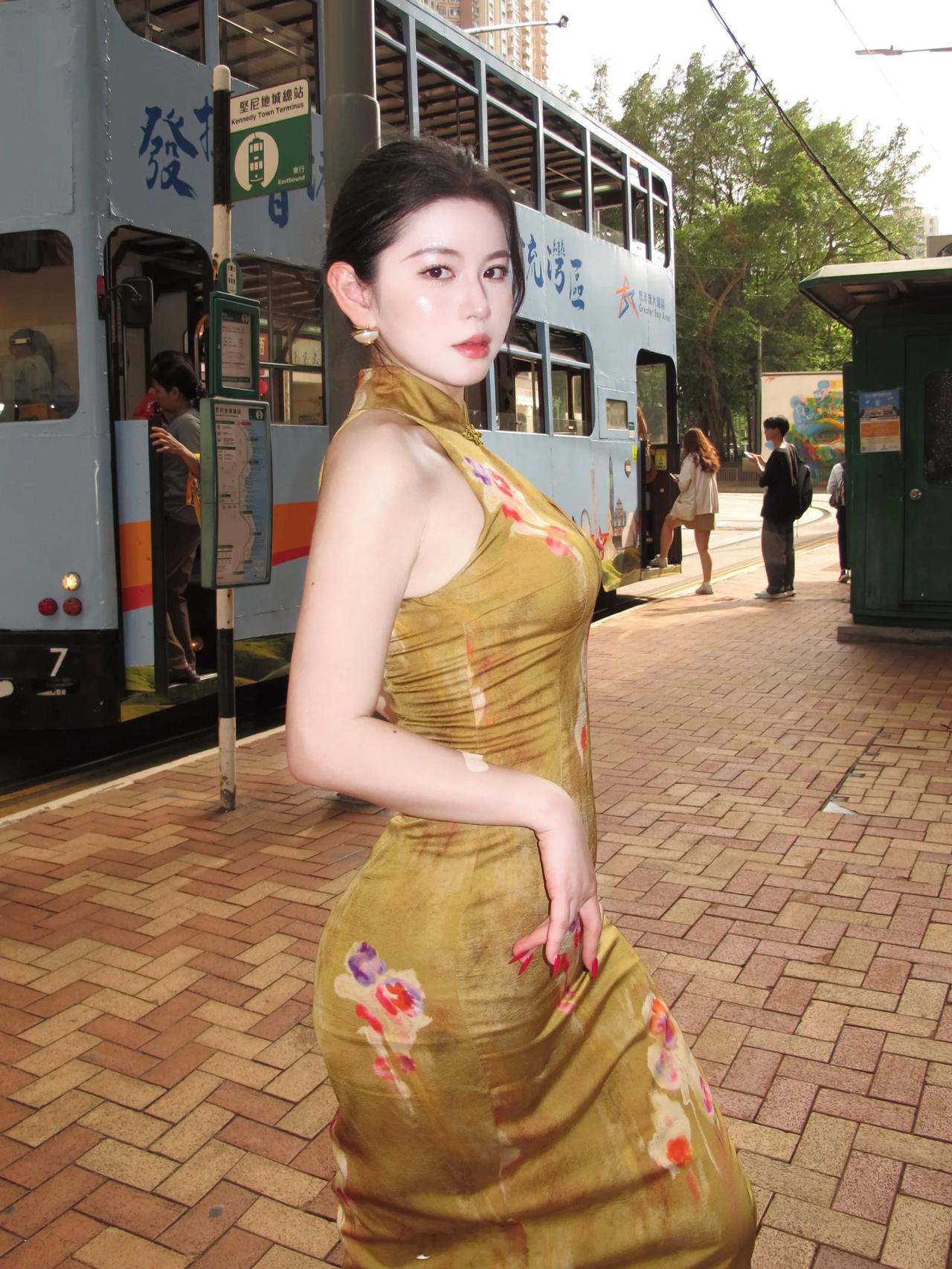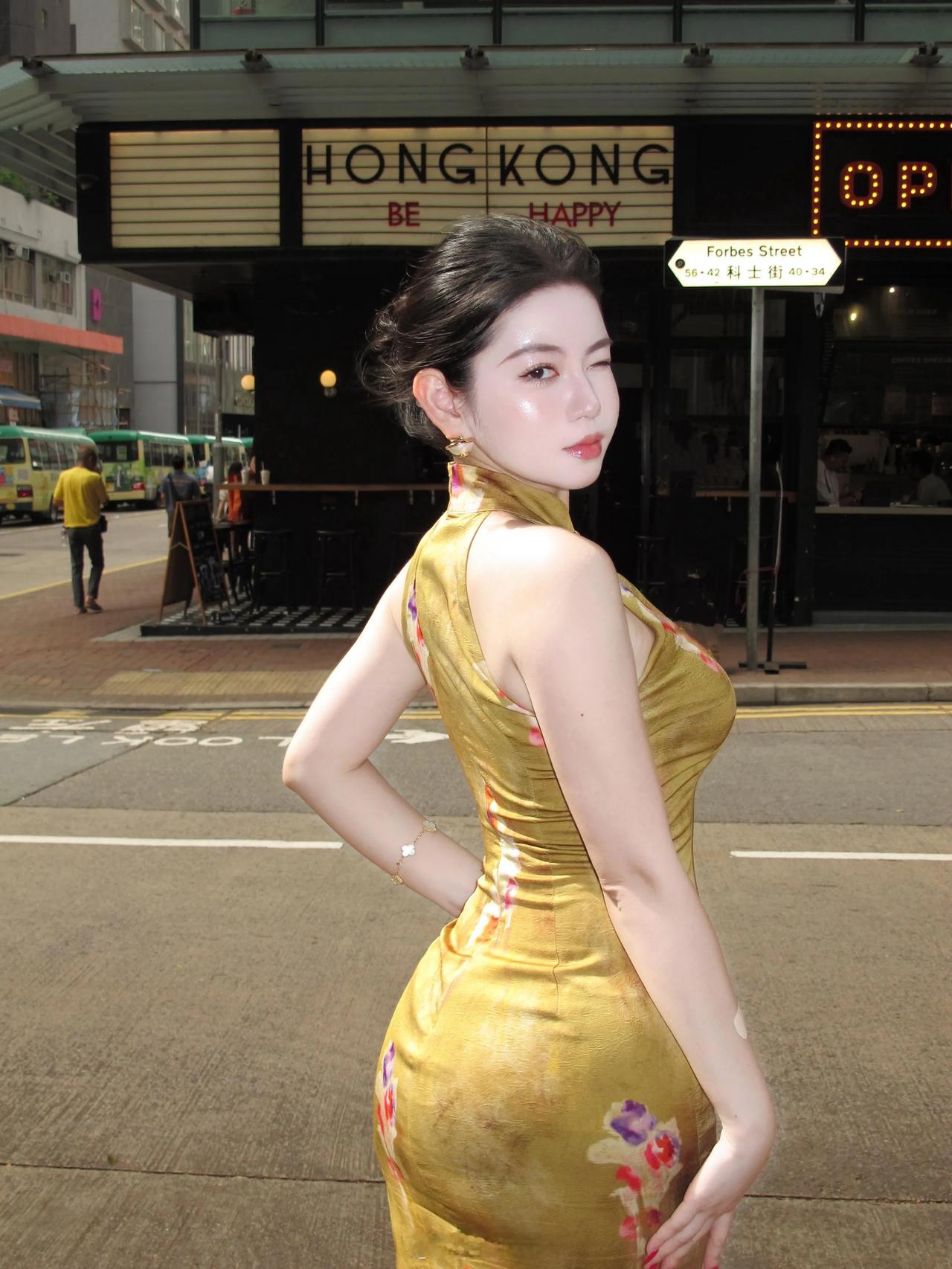 金色旗袍惊艳亮相,繁华街头尽显东方韵味