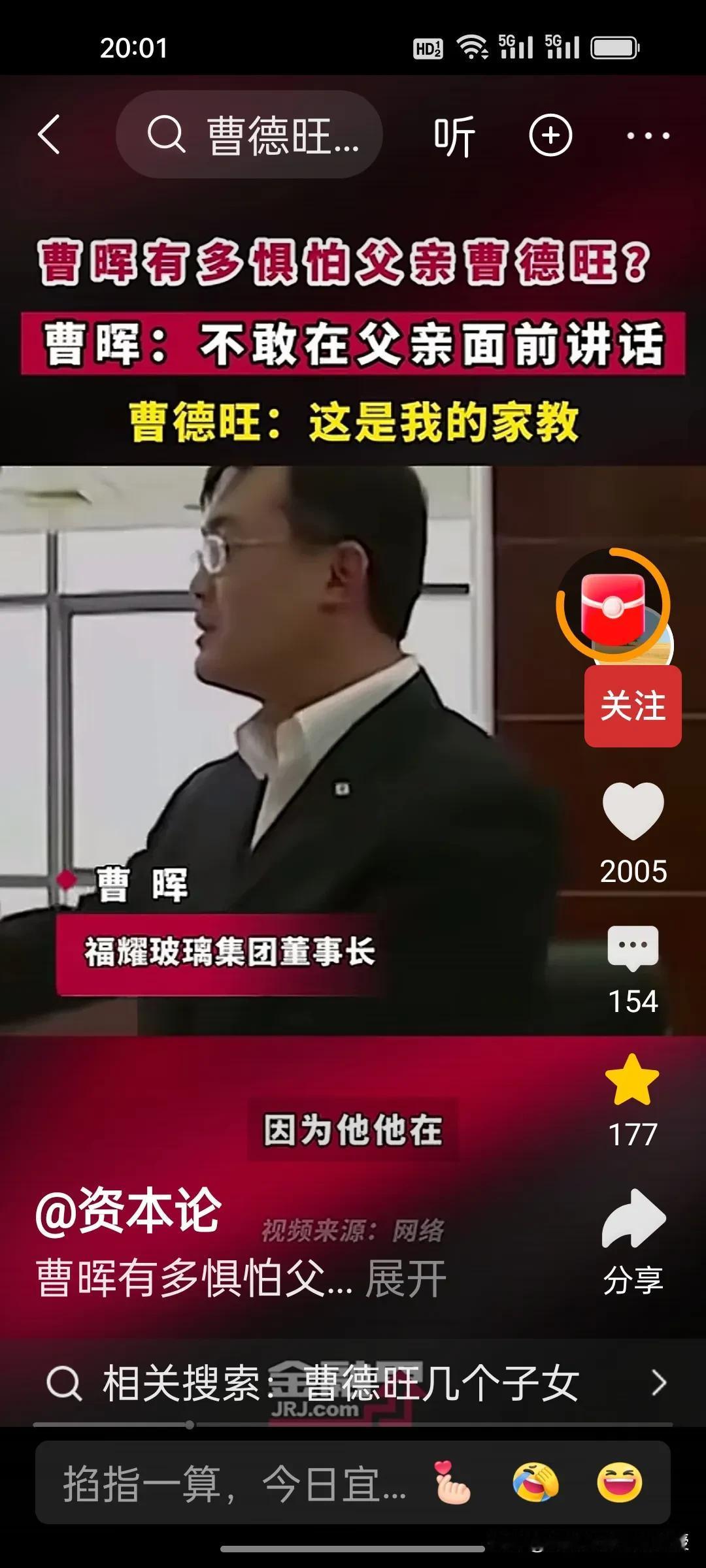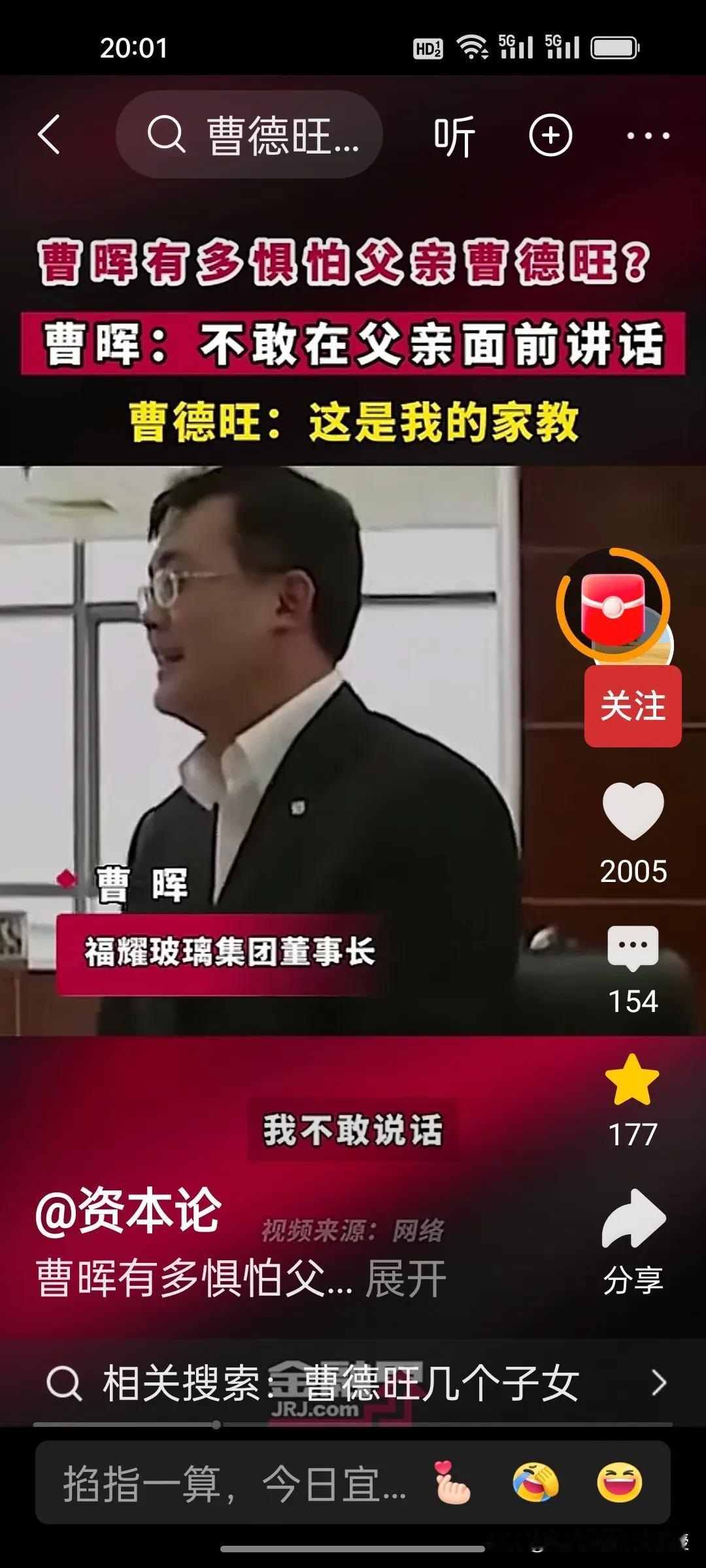 刚刚看到一个视频,曹德旺的儿子曹晖当上董事长了,在记者面前,也是不敢跟父亲说话,