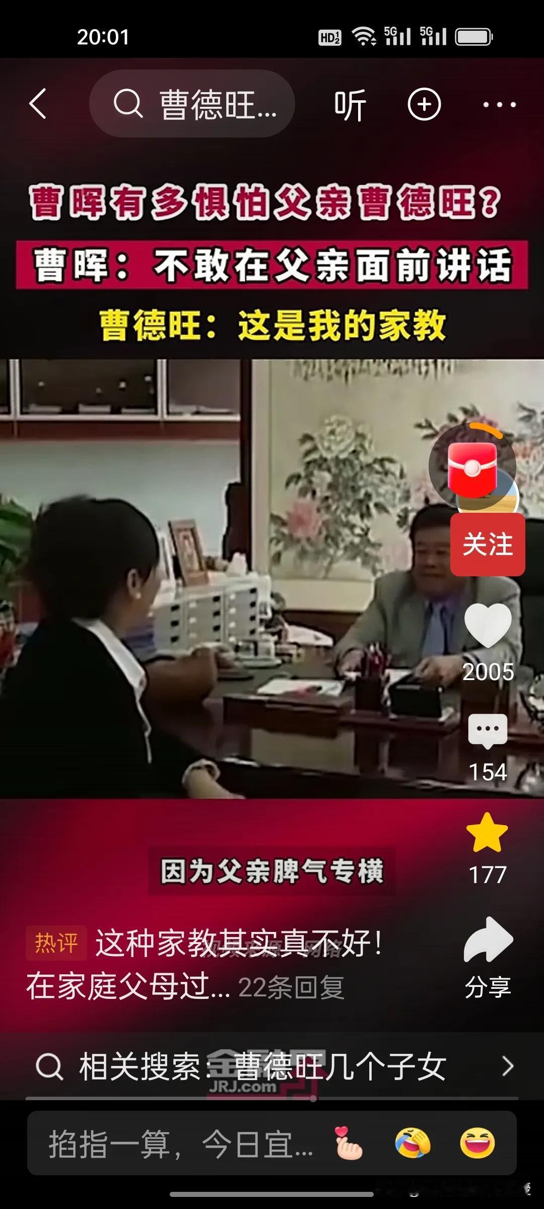 刚刚看到一个视频,曹德旺的儿子曹晖当上董事长了,在记者面前,也是不敢跟父亲说话,非常害怕父亲,在一个企业工作,也从不单独说话,更是很少在一张桌上吃饭。曹德旺说这是他的家教,他说曹晖非常朴素,非常节约。曹晖看起来非常谦和有礼貌,一点都没有富二代那种自豪感。他对父亲很尊重。曹德旺对家里的子女管教非常严格,是传统严父教育在现代企业家家庭的典型体现。