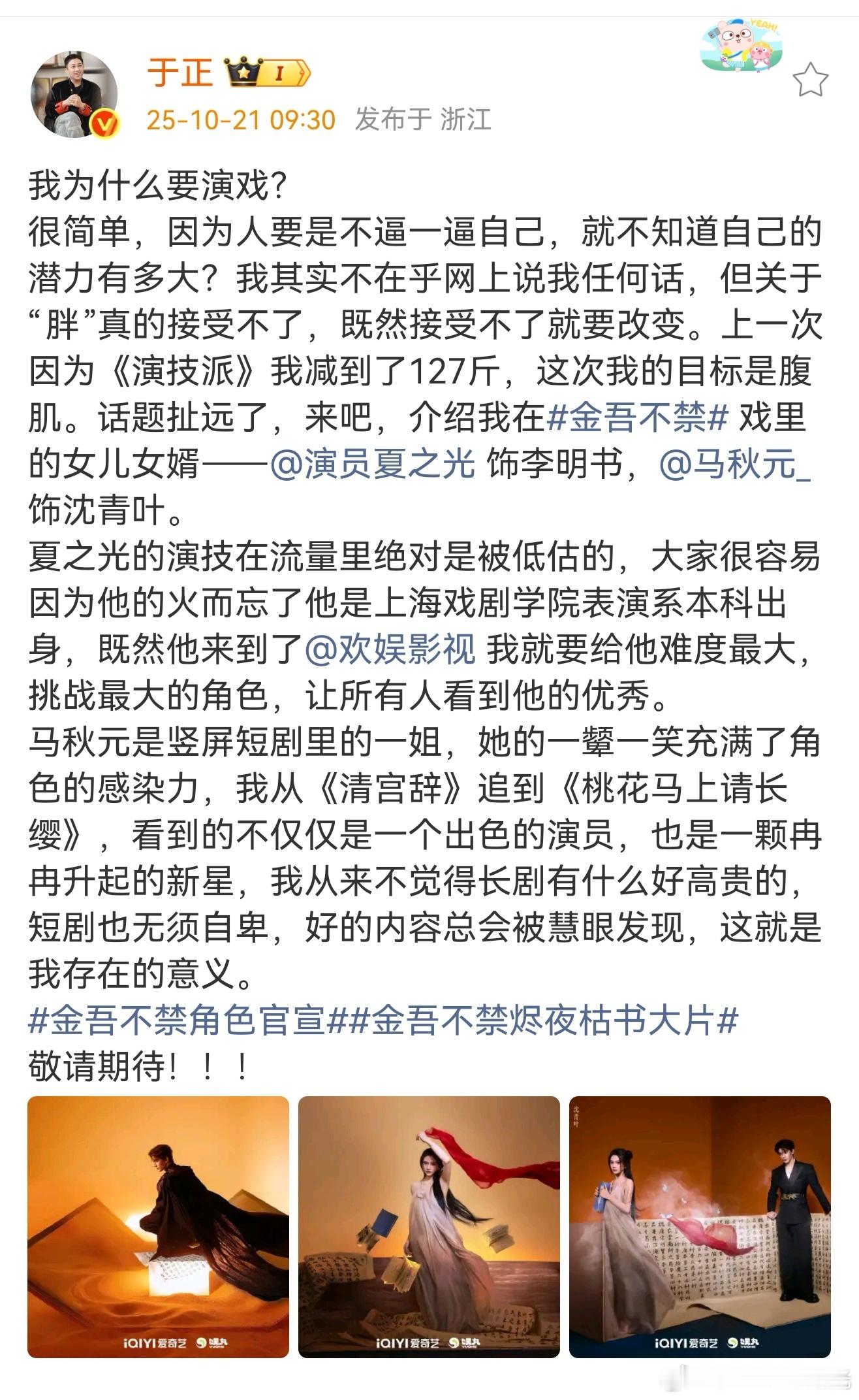于正说夏之光演技被低估于正说夏之光是科班出身,既然来到了欢娱,就要给他难度最大挑
