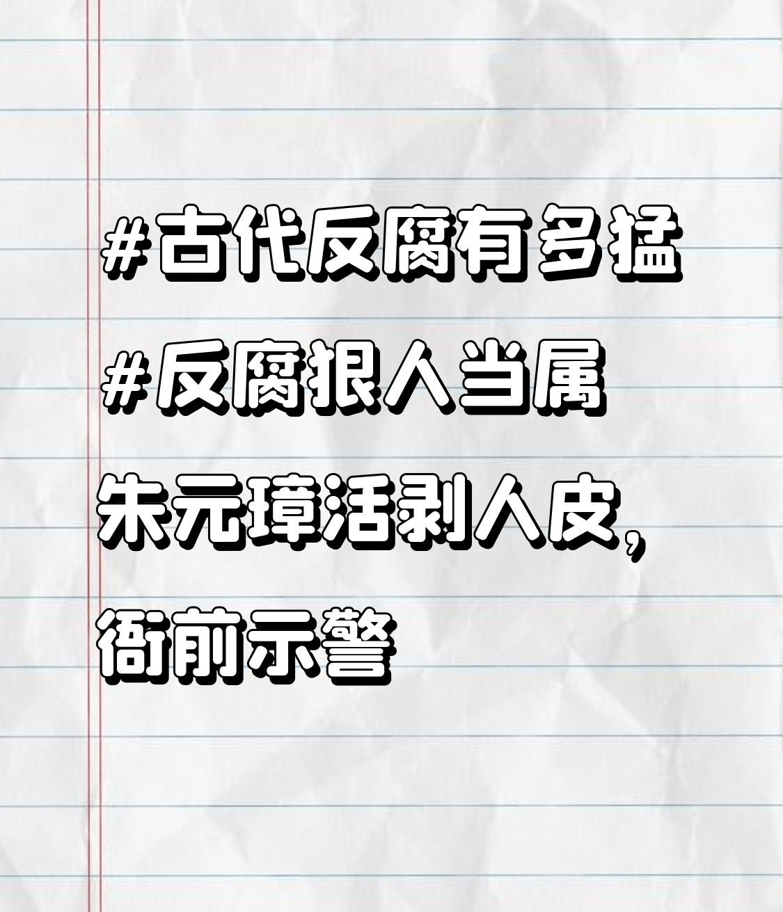 古代反腐狠人,朱元璋必须拥有姓名!他出身穷苦,深知百姓疾苦,对贪官那是深恶痛绝。他立下铁律,贪污超 60 两银子,就枭首示众、剥皮实草。 《御制大诰三编》里,建昌县知县徐颐、德安县县丞陈友聪等因贪污被凌迟处死;《明史》记载开州通判刘汝霖逼百姓为他偿还赃款,被斩首示众。更吓人的是剥皮楦草,把贪官皮剥下塞稻草,挂在公堂左侧“皮场庙”或县衙大门上。洪武 31 年,他处死超 15 万贪官,这反腐力度,简直绝了!
