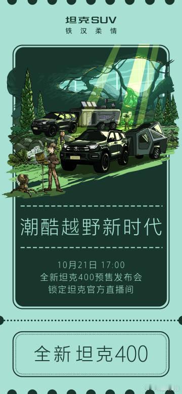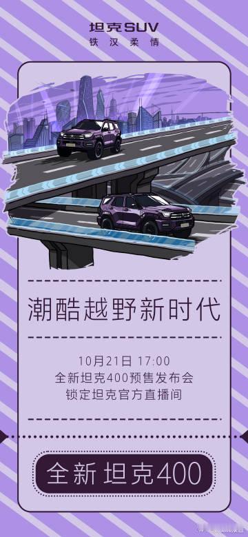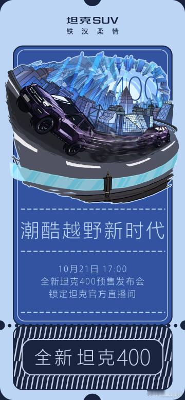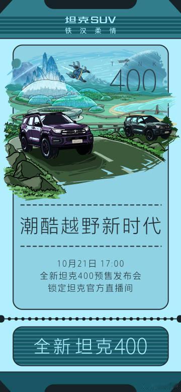全新坦克400 预售发布会将于10月21日17:00正式开始!一起解锁潮酷越野新时代!