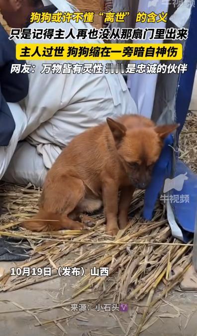 “彻底解释不清了!”山西一老人去世,哀乐一响,家里的狗狗找个角落低下头暗自伤神,它或许不懂离世的含义,但是从它的眼神和面部表情看给人一种悲伤的感觉,虽然它也不会开口说话,它的心里面却知道主人再也没能从那扇门里出来!网友:看上去它的眼里满是伤心。 事情的起因是王大爷(化名)在去世前的时候偶然间的见到了一只棕褐色的小狗,自从大爷带回家之后,就对它的关爱无微不至,每天都会亲自准备它的食物。 每当王大爷坐下来时,小狗会跑到他脚边,依偎着他,享受着那份温暖的陪伴,他会轻轻抚摸它的头,和它说话,仿佛它是家里的一员。 然而就在前几天王大爷因病去世了,家里面的人都在忙着办丧事的时候,小狗却孤零零的坐在一旁,满脸的伤心与悲哀。 家属将这一幕拍下来并上传到网上,迅速引发了关于动物情感的大讨论。大家猜测,这只狗是否在为失去主人而感到伤心,还是仅仅因为周围的嘈杂和忙碌感到不安。 对于狗的表现,有两种解释,一种认为狗表现出的情绪只是由于环境的干扰,悼念活动持续了好几天,宾客进进出出,声音不断,这让它无法安静休息,导致它精神疲劳,眼睛分泌物增加,眼角的湿润痕迹可能是疲劳所致,而不是真正的泪水。 然而,另一种看法是它蜷缩在角落里,头低垂,眼神中充满沉重和无力,它的这种姿态看起来不像是疲倦,而更像是深深的悲痛。 人们从它的眼神中看到一种无声的痛苦,仿佛它在默默承受失去主人的痛苦,这种表现让人感到心酸,让人不禁思考它是否真的在哀悼。 它可能无法理解死亡的概念,但它与主人的情感纽带无疑是深厚的,它的表现可能不仅仅是对环境的反应,而是一种因失去亲近的人的痛苦反应。 事后网友刷到了这个视频之后,有一位网友分享,他爷爷去世后,爷爷收养的流浪猫开始拒绝吃饭,最终因绝食而变得非常虚弱。 这类故事让人触动,因为它们反映了人类对于动物情感的期待,也让我们反思动物是否也能感知深刻的情感。 动物的悲伤打动人心,或许是因为它们无法用语言表达自己的感受,狗的表现让我们看到了跨越物种的情感联系,这种情感在没有语言的情况下依然能够触动人心,给我们带来安慰。 我们也许无法完全理解这只狗内心的感受,但它的沉默和行为让我们感受到了爱、忠诚和失落的共同主题,这种情感不需要太多解释,它已经足够触动每一个看到这一幕的人。 对此,你还有什么看法呢? (信息来源 :牛视频 )