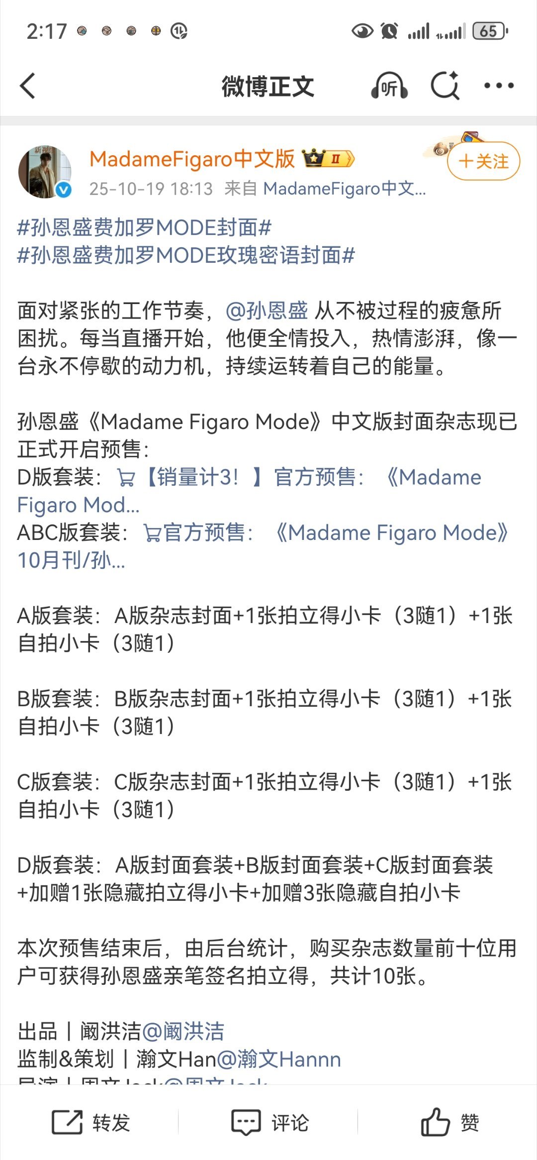 孙恩盛不是网红么?也能费加罗封面了。。。这咖位。。。