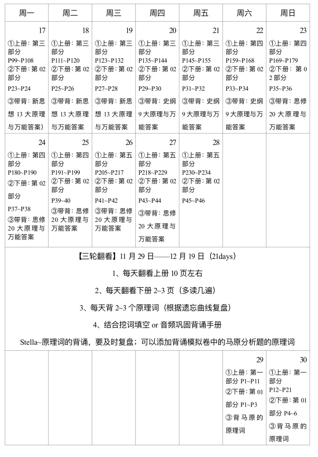 Stella~原理词的背诵,要及时复盘;可以添加背诵模拟卷中的马原分析题的原理词