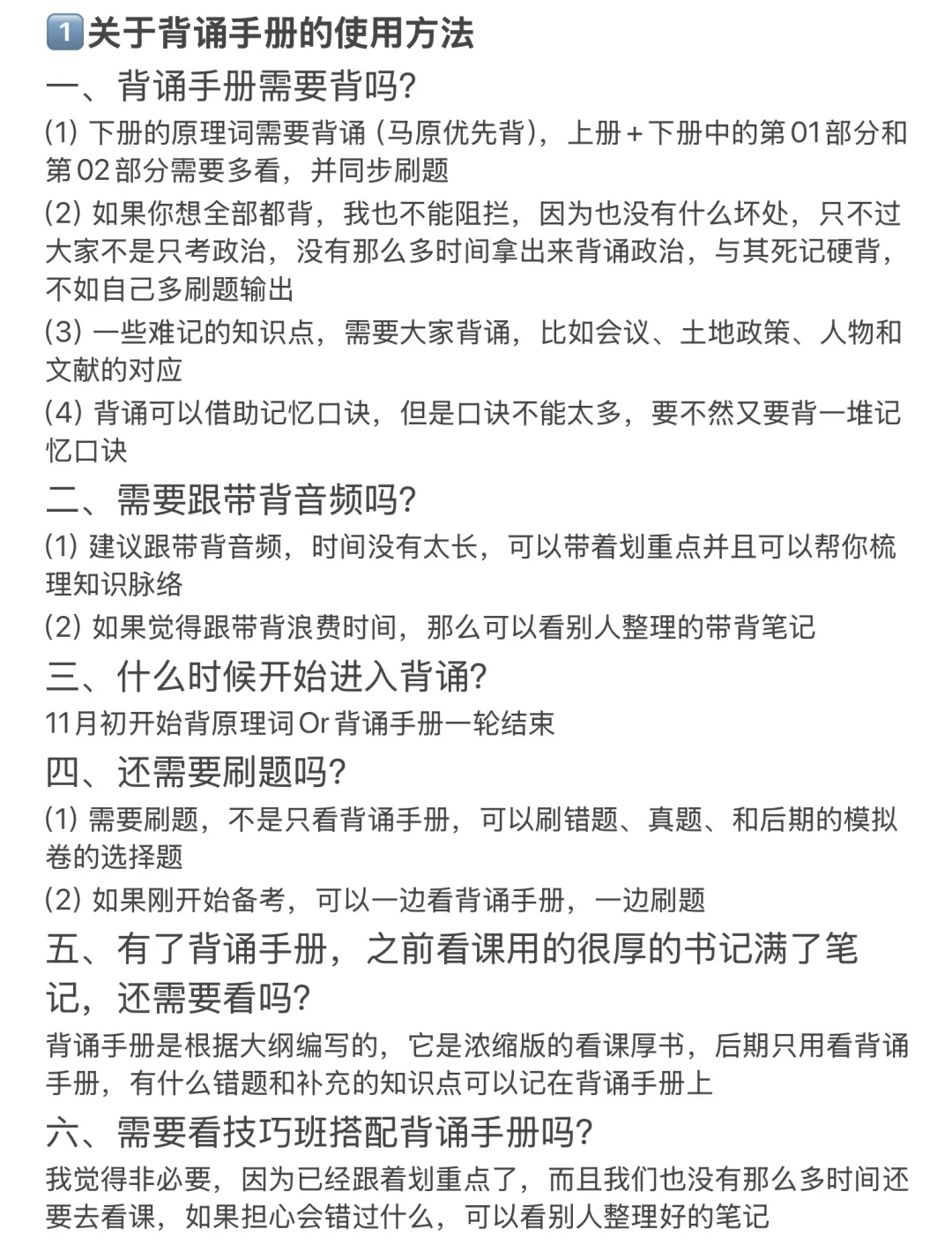 背诵手册是根据大纲编写的,它是浓缩版的看课厚书,后期只用看背诵手册,有什么错题和补充的知识点可以记在背诵手册上