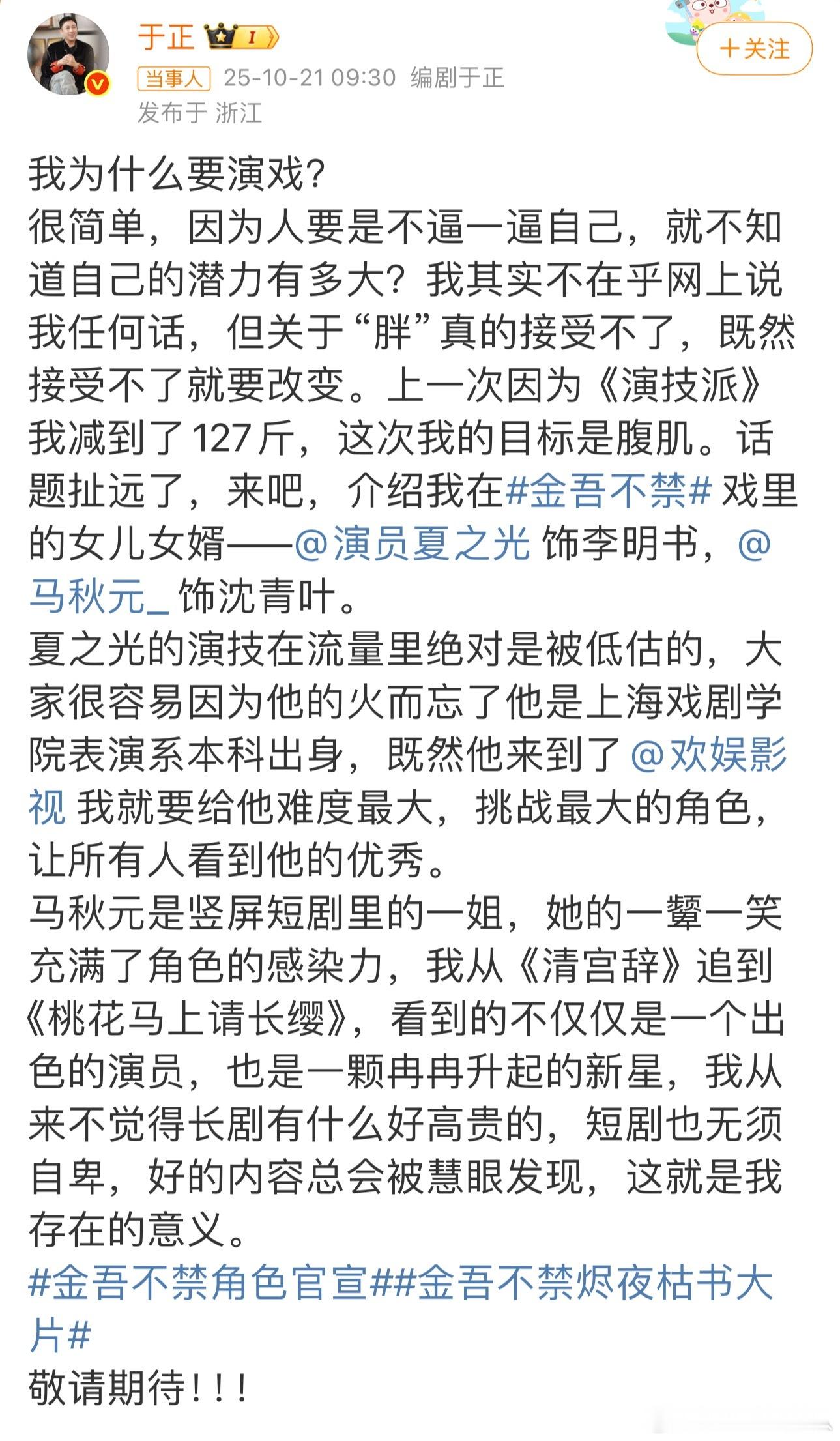 于正说夏之光被低估了期待下了于正说要给夏之光难度最大的角色