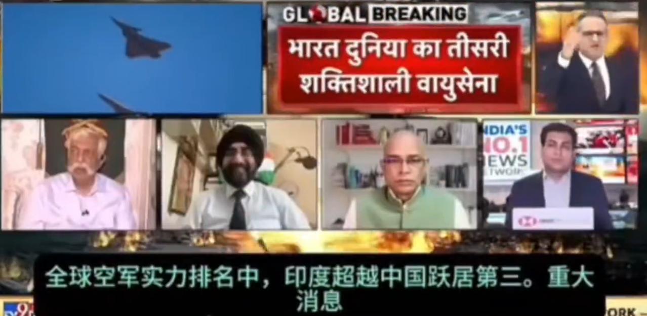 印度国内吵疯了。 在我们看来,印度空军被美国杂志,排在美俄之后,是世界第三大的空军,简直就是个笑话。 但是很显然,印度人不这么看。 在印度人看来,美国杂志的排名很合理,且非常具有权威性,印度空军本来就是第三。 为了维护这个第三,印度的专家甚至说出这样的话,“中国空军数量略微占有,但是空军的训练、战术印度处于领先”。 这是印度专家的原话,就是头上裹着黑布的这个人说的。 另外,说一个未经证实的消息,是苑举正教授说的,美国这家杂志的总编辑是印度人。