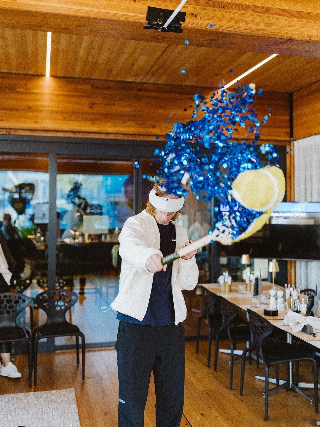 网球talking大会 卢布列夫生日快乐🎂!“小狼狗”参加了维也纳500赛组委会为其举办的生日会,手持木勺球拍击落网球🎾 。