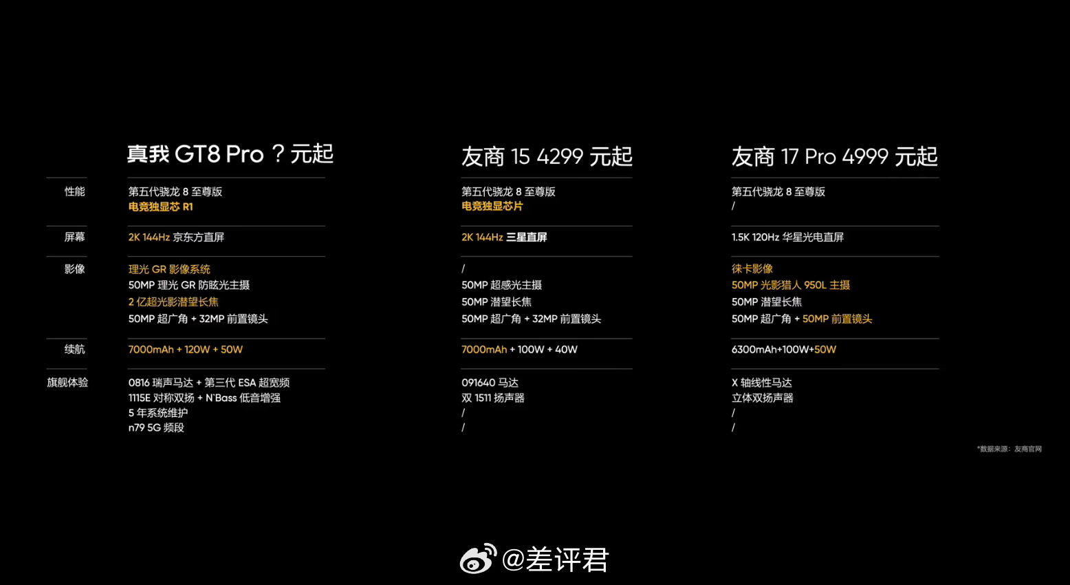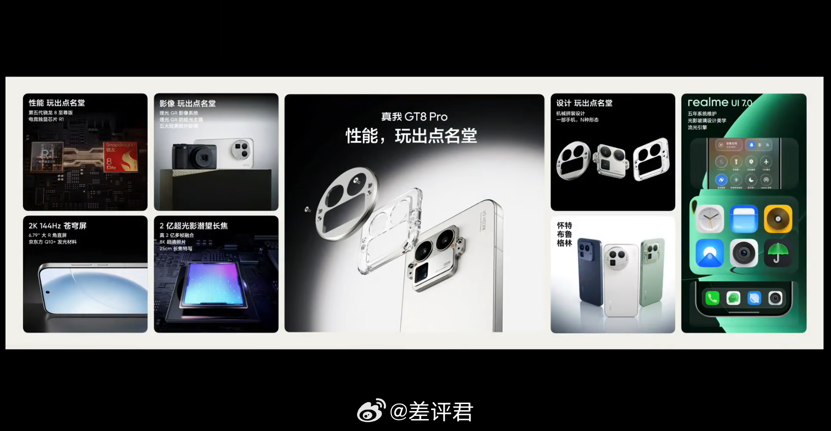 有了影响联名之后 GT8 Pro 果然涨价了,起售价涨了 400 块,不过我感觉横向对比之下性价比依然挺高的,骁龙 8e Gen5、7000mAh 电池、无线充、2K 屏。。。该有的都有,而且这次有了可更换式 Deco 以及理光联名,整体定位往上探了,我还挺想看看销量能到多少的[吃瓜]