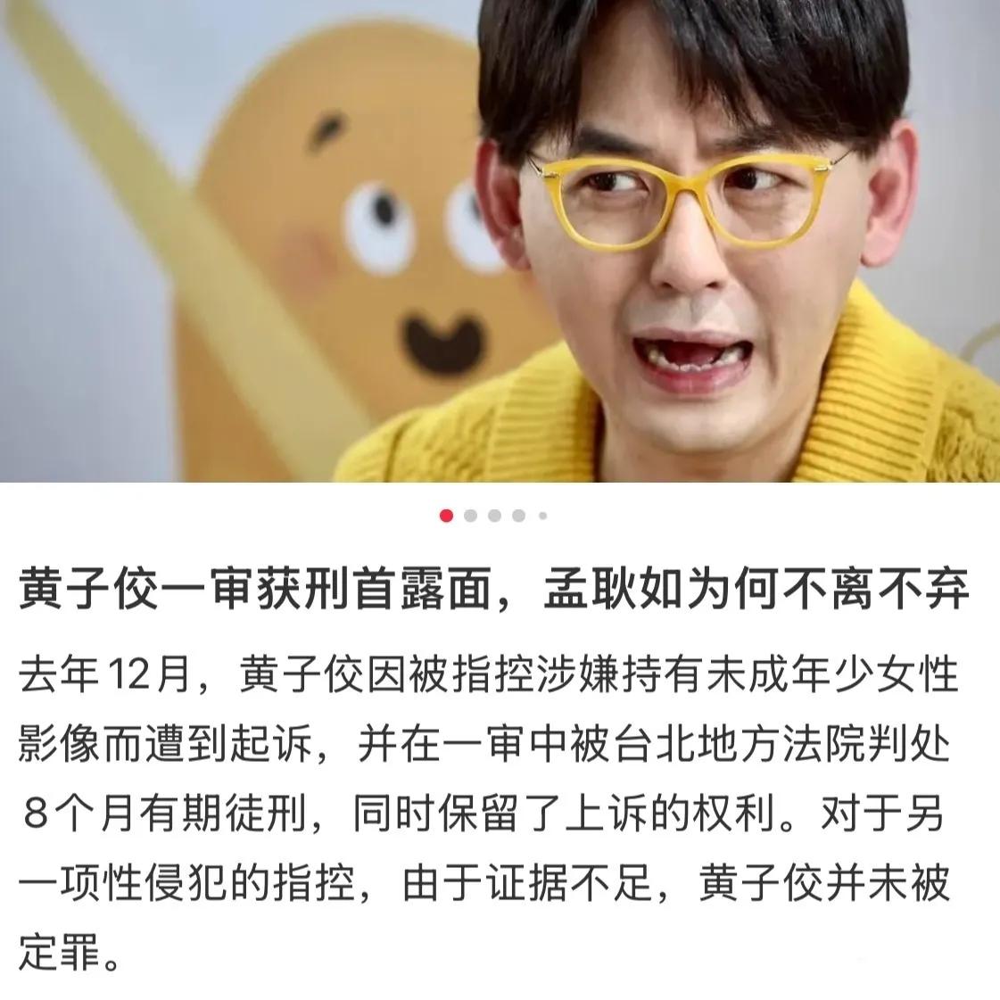 黄子佼孟耿如还是离了,发生了那么大的丑闻,作为配偶的孟耿如也承受了很大的舆论压力