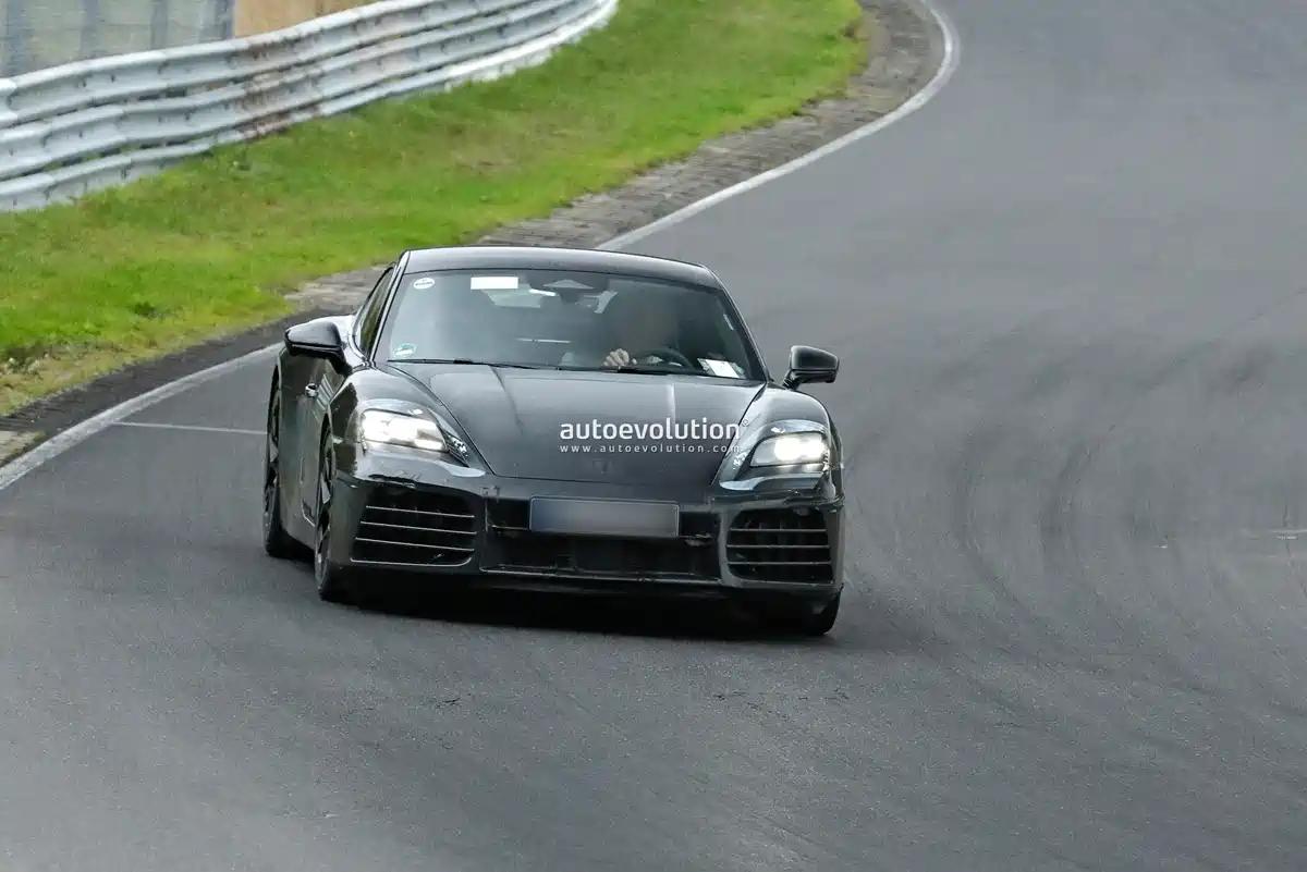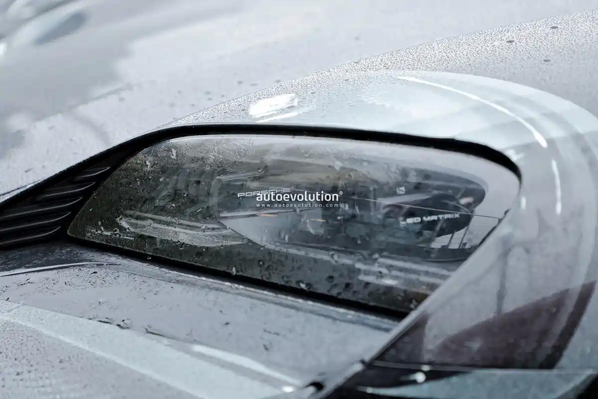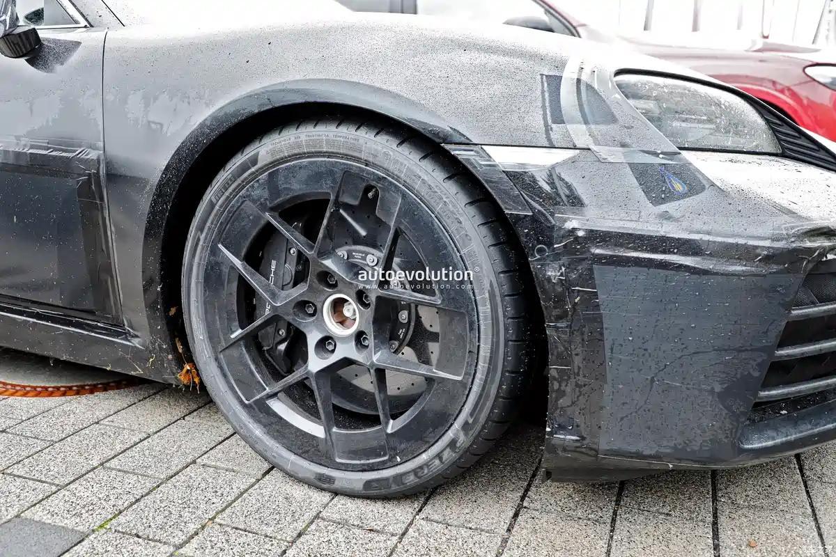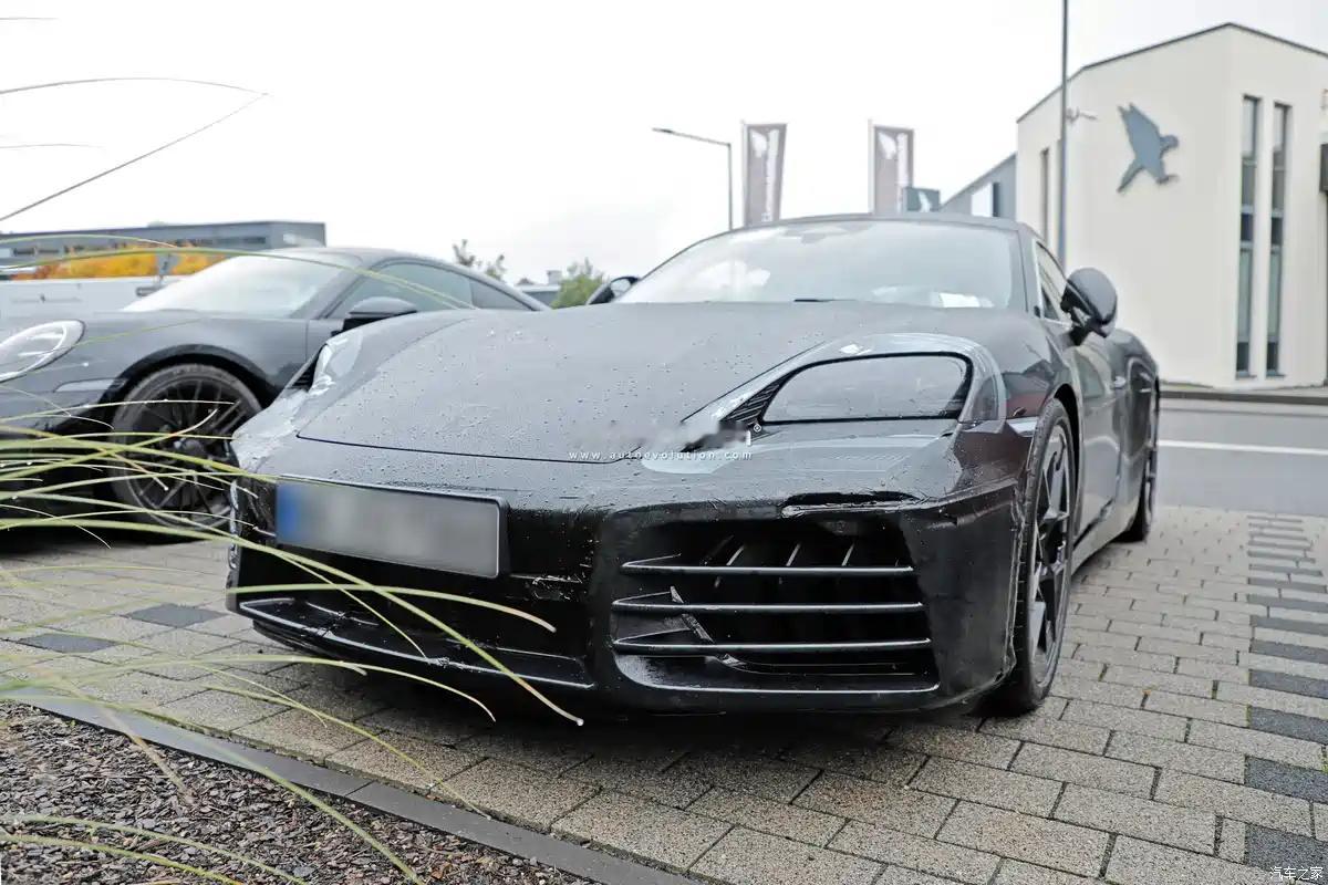 与现款相比,新车的车顶线条向后延伸更远,呈现出更明显的“气泡”形态。测试车配备了与全新911 GTS和Turbo车型相似的垂直空气动力学导流槽,再加上清晰可见的碳陶瓷刹车系统,明确传达了保时捷并未因电动化而弱化性能追求。新车情报局