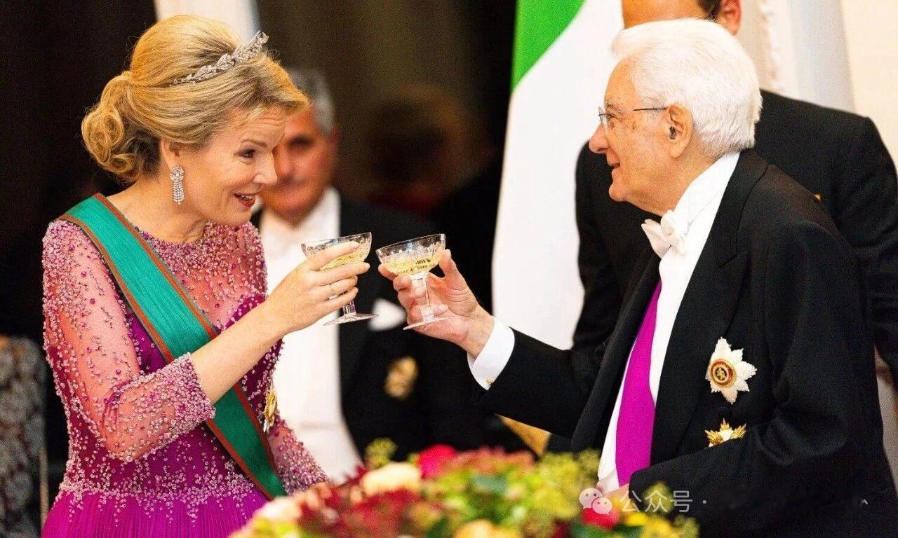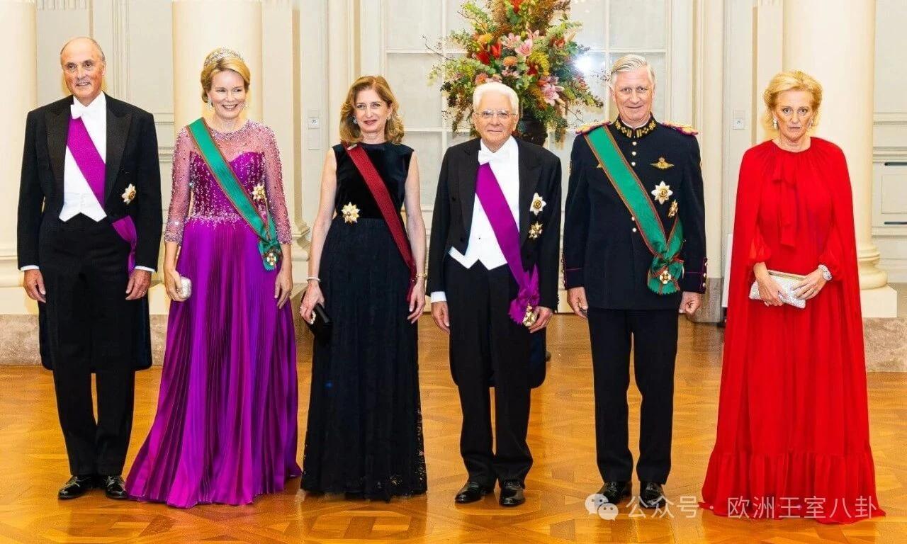 昨天意大利总统大爷塞尔吉奥·马塔雷拉带着闺女劳拉开始了对比利时为期两天的国事访问 这一趟比较简单,第一天国王菲利普和王后玛蒂尔德只负责欢迎仪式和晚上开席。可能为了“致敬”,当然更可能只是因为爱,玛蒂尔德日间和夜间穿的都是阿玛尼高定 其中日间为全新订制,没有魔豆底板;夜间礼服最早见于2019年访问卢森堡,面料无敌,款式就改得比较平平无奇啦 珠宝方面没太多特别,玛蒂尔德日间戴的耳环上个月最早出现,来源不明不过看得出品质不错,她和闺女伊丽莎白连轴戴第三次了 夜间还可见阿斯特里公主和驸马洛朗,不造为啥阿斯特里不戴王冠也不用绶带,跟乱入一样