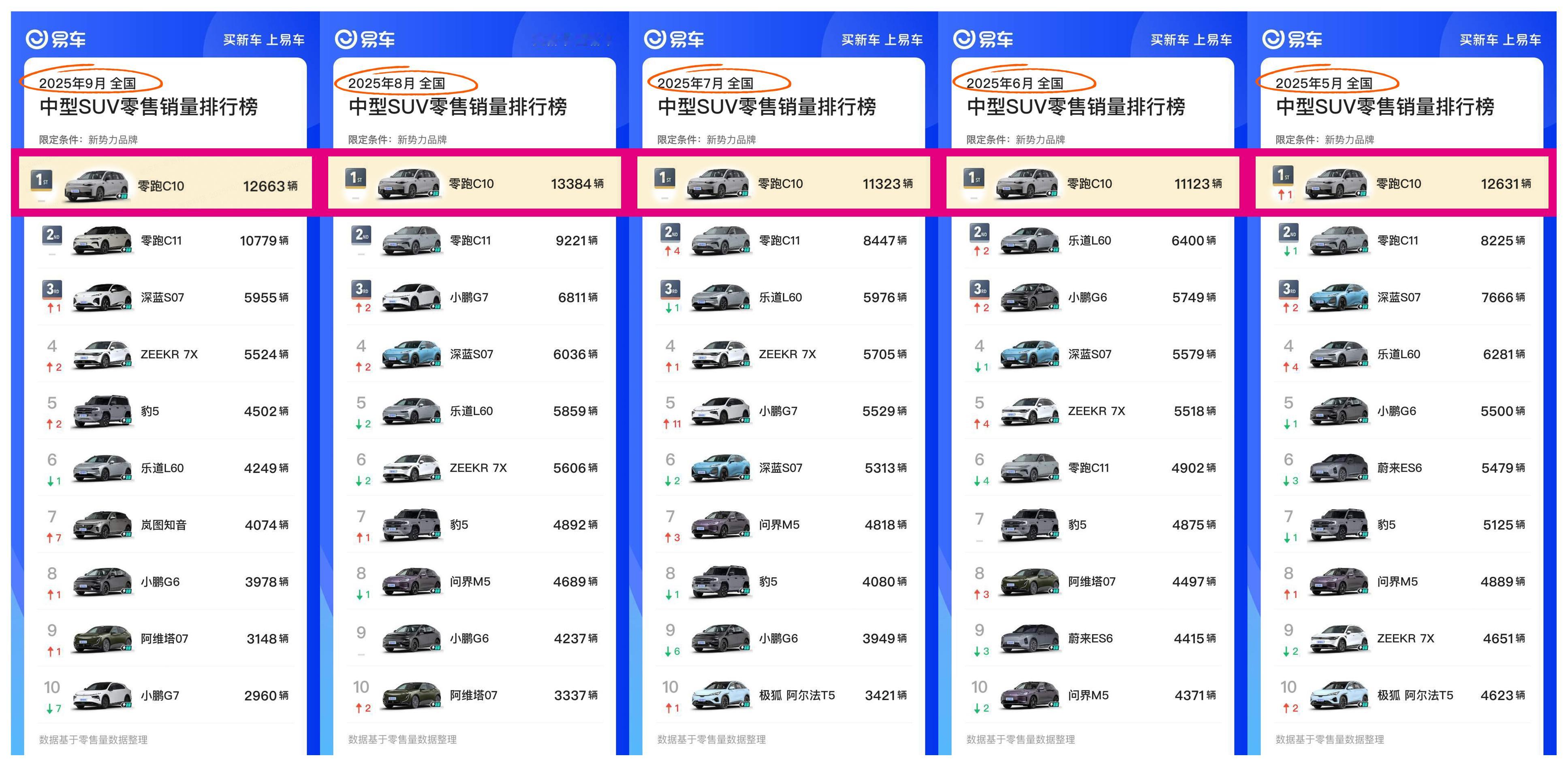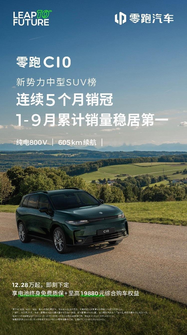 小张在去年就体验过零跑C10,即便是老版本也依然实力超群。今年这台车不光全面升级焕新,26款C10还迎来首次大版本OTA,一口气新增了通勤领航辅助、哨兵模式等19项功能,出行变得更安全、更智能,家庭用户选车根本绕不开它。截至目前,零跑C10全球累计交付量 16 万台,仅用 17 个月就达成这个成绩,速度相当惊人!更重要得是,作为新势力中型 SUV ,它已经连续 5 个月第一,1-9 月累计销量稳居第一。