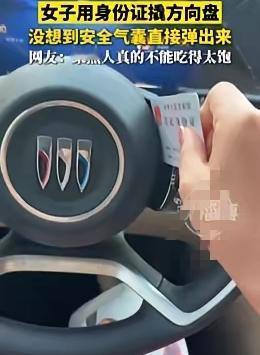 “吃饱撑的!”10月20日,浙江,一女子在车里太无聊,好奇地用身份证撬方向盘,没想到下一秒安全气囊直接弹出来,把女子“打”的鼻青脸肿,网友:原版原漆的“事故车”! 真的笑不活又气不打一处来!浙江这姑娘是闲出啥新高度了?在车里待着没事干,居然拿身份证去撬方向盘,结果直接被弹出来的安全气囊揍成了“熊猫眼”。 一开始她就轻轻拨弄,见没反应还以为这玩意儿是摆设,越撬越使劲。哪想到安全气囊根本不跟她客气,“嘭”一下弹出来,正正砸在脸上,手机都给拍飞了。下车一看,眼角肿得老高,鼻青脸肿的,别提多狼狈了。 要知道安全气囊是救命的,只有严重撞击才会弹,她这纯属主动“找揍”。更坑的是,气囊一弹,车就算“事故车”了,再想卖都得亏不少。 这事儿真给所有人提了个醒:别拿安全装置当玩具瞎折腾!你们说,要是换成你,在车里无聊到极致,会干出这么离谱的事不?