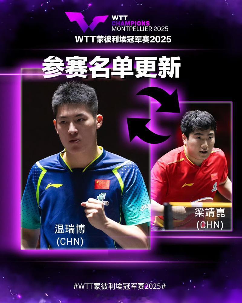 中国队五大主力全部退出WTT蒙彼利埃冠军赛! 最新消息,王楚钦,林诗栋,梁靖崑
