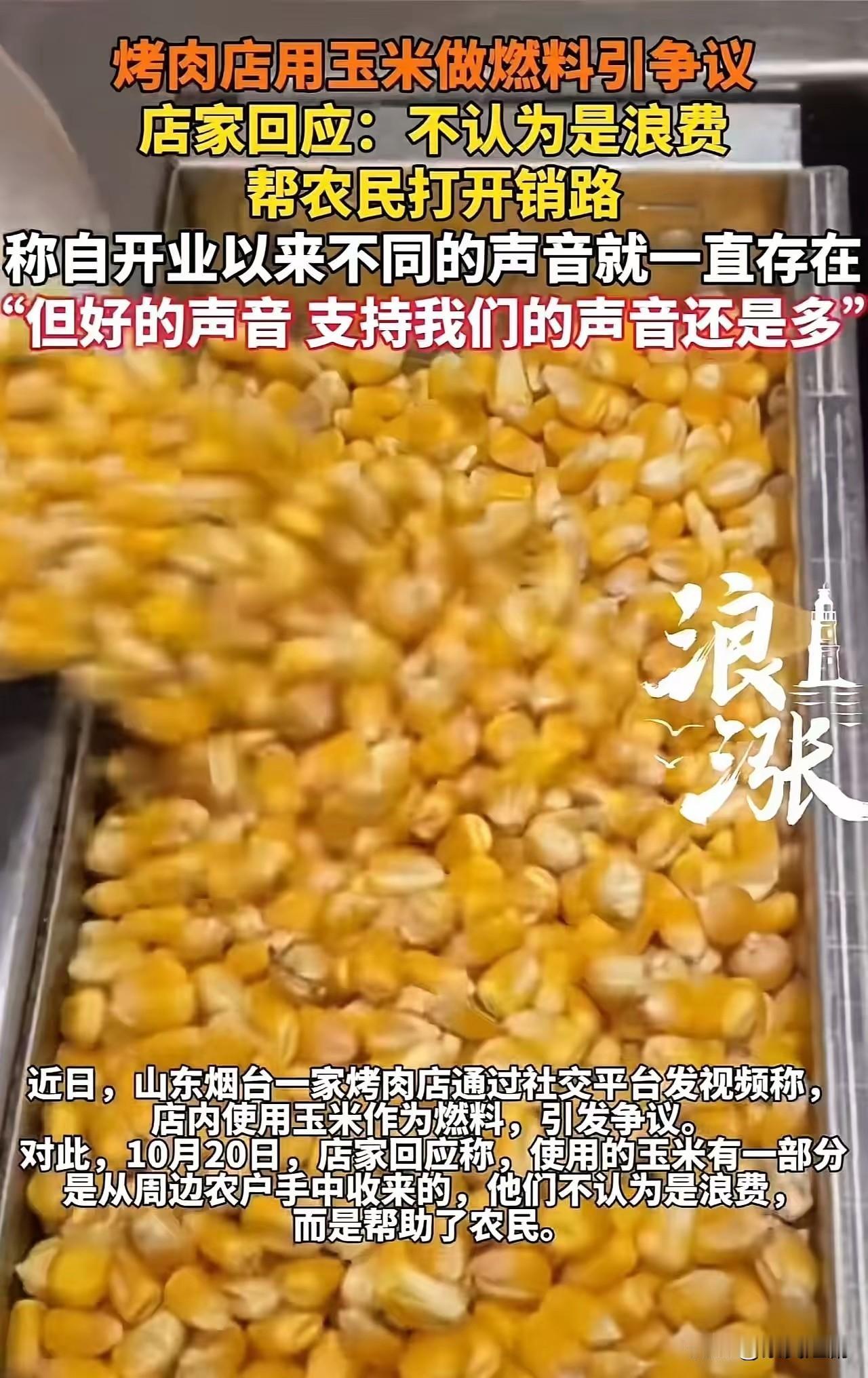 近日,一家烤肉店以玉米为燃料的做法引发了广泛争议。有人觉得,这是对粮食的浪费,特