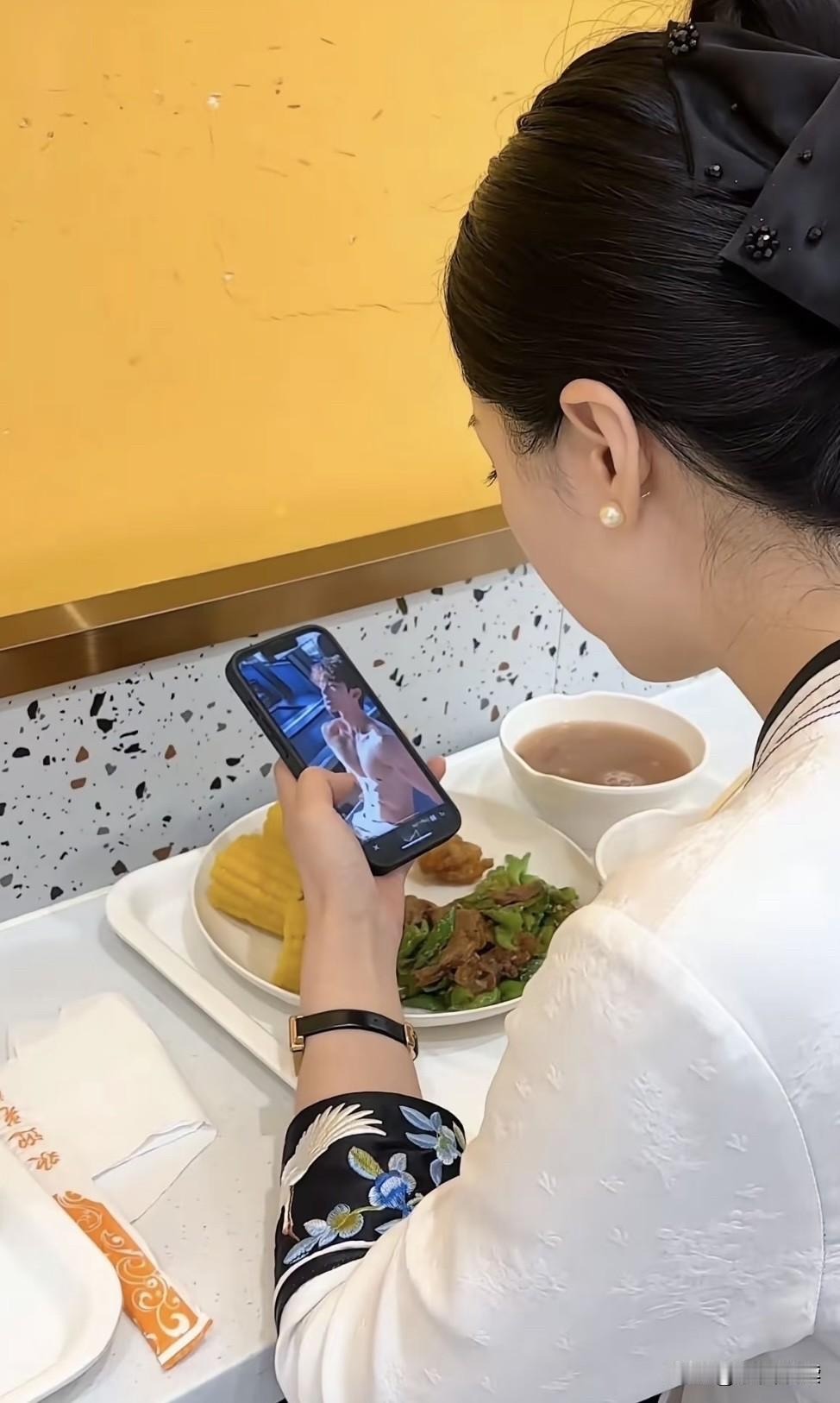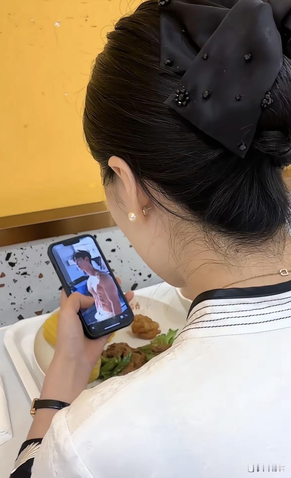 哈哈,原来美女也喜欢看帅气猛男啊,吃个饭还一个劲儿地盯着不放!