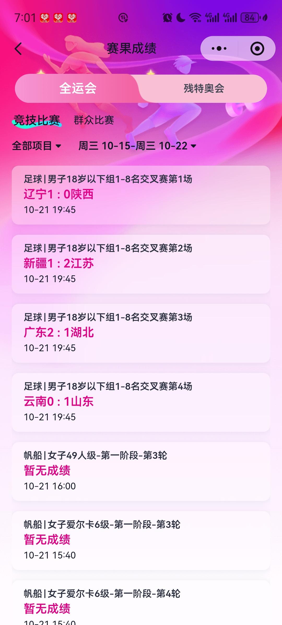 全运会U18男足四强诞生!分别是辽宁、江苏、广东和山东。 辽宁1比0陕西 江苏2比1新疆 广东2比1湖北 山东1比0云南。 东道主广东能否拿下这枚男足金牌?上一次广东男足全运会夺冠应该要追溯到1987年了!