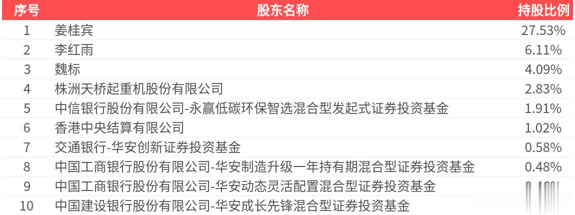 公司股东户数为2.44万户,前十大股东持股数量为1.20亿股,占总股本比例为45.46%,前十大股东持股情况如下:
