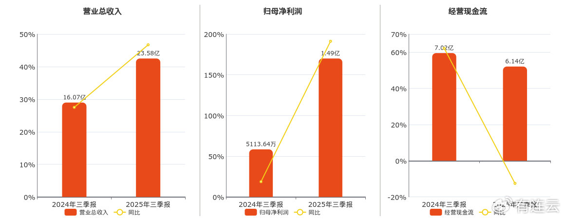 公司营业总收入为23.58亿元。归母净利润为1.49亿元。经营活动现金净流入为6.14亿元,较去年同报告期经营活动现金净流入减少8785.86万元,同比较去年同期下降12.51%。