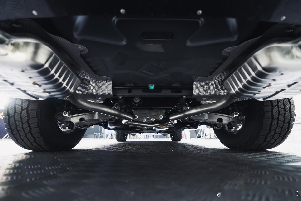 悬挂系统采用前双球节与后H臂整体多连杆结构,兼顾越野刚性与公路舒适;再加上标配的纯机械式托森后差速器、全地形轮胎、原厂全钢底盘装甲及负重3吨的前双拖车钩,共同强化了车辆在复杂环境下的通过性与可靠性。