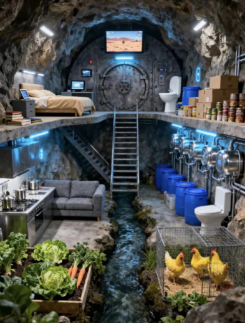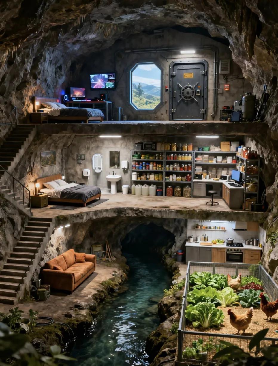 下面是1号,2号,3号地堡,非常严密,可以说是与世隔绝,假如可以供一个人在里面生存很多年,至少要住满5年才可以出去,但是期间不能出门,而且先挑选先得!这里面都有外面的实时监控画面,有电有网,有蔬菜有肉!你会选择几号一个人住上五年?