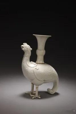 鸟尊这种艺术形态源于青铜器,但商代青铜器鸟尊的脖子处理的很弯曲,在瓷器上很难实现,所以,瓷器上的鸟尊,相对简单一些。