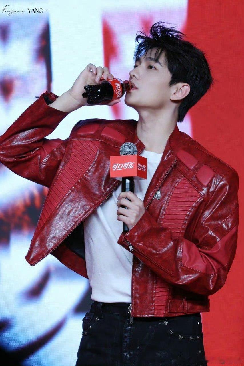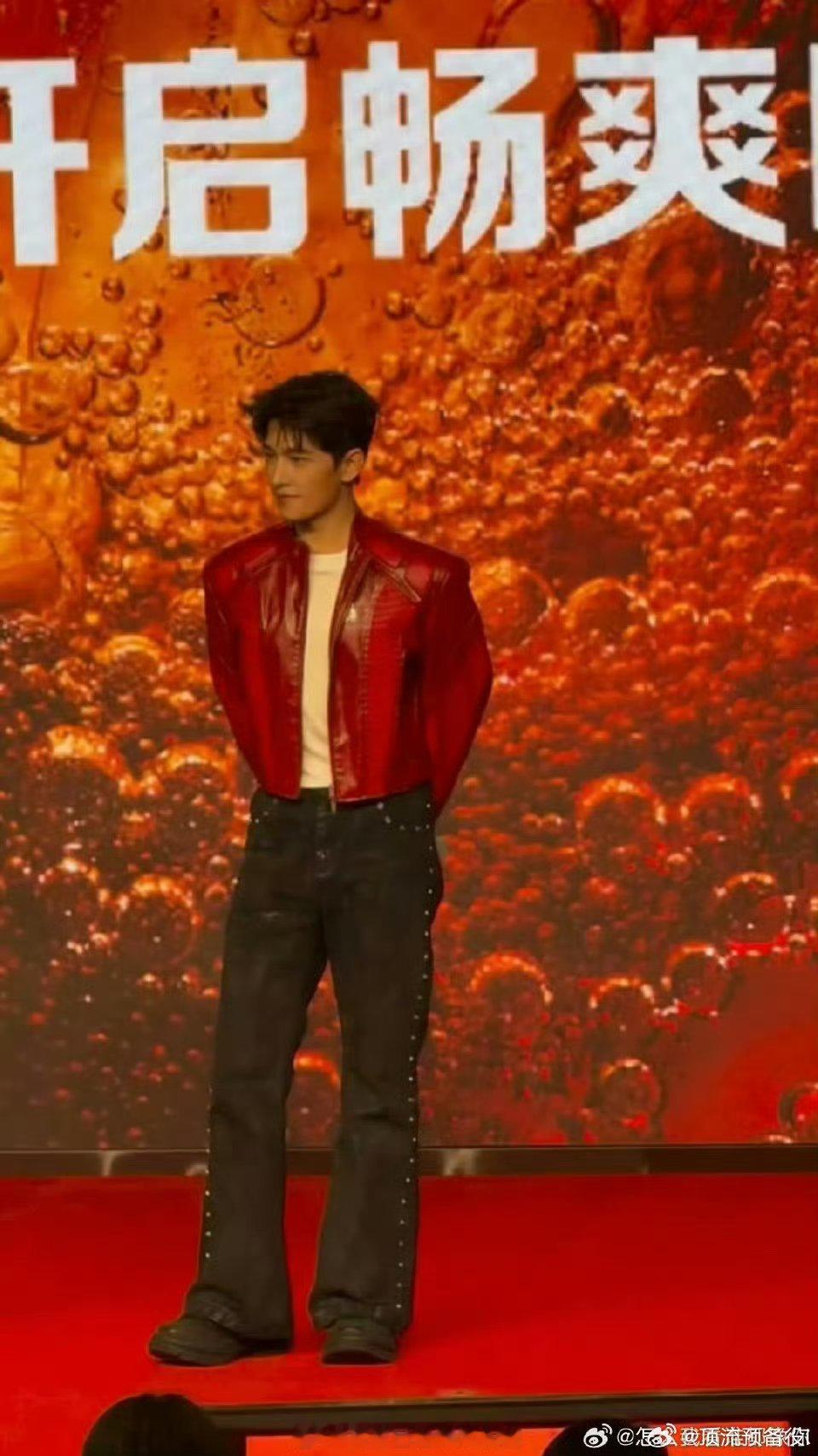 杨洋今天线下品牌活动,红色皮衣好帅根正苗红的周正帅哥[爱你][爱你][爱