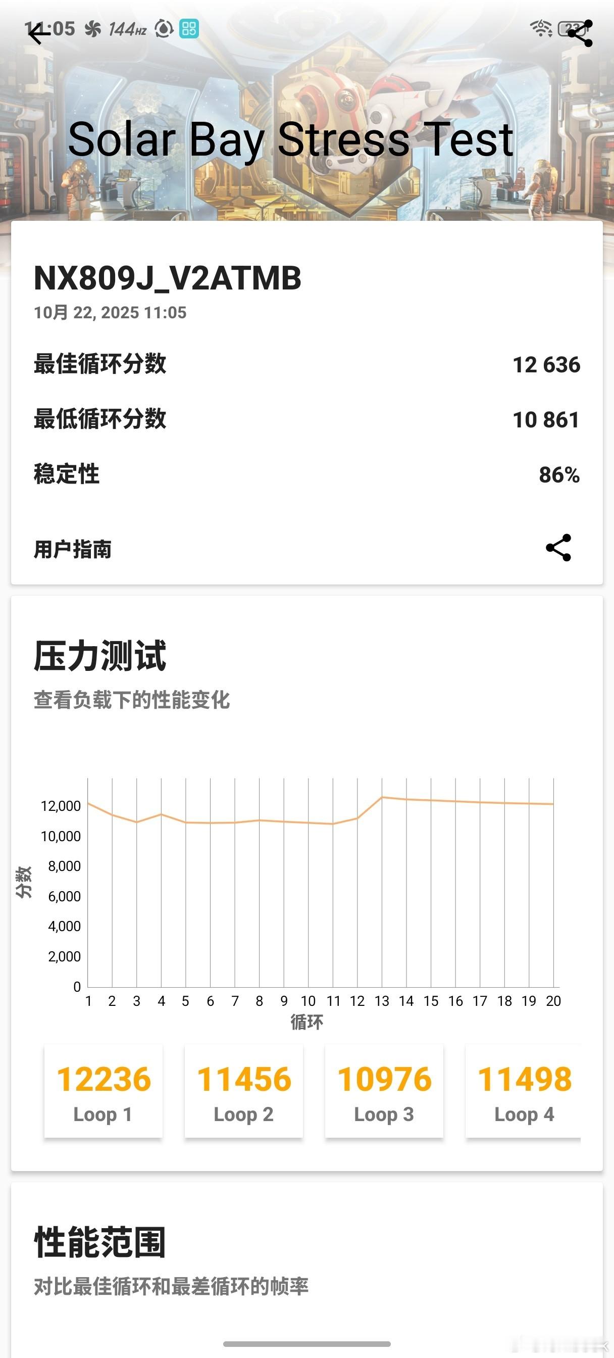 给红魔11 Pro+带上散热倍夹,再加上机身内置的风扇和液冷,三管齐下,终于压住了这头猛兽,成功跑完3D Mark Solar Bay Stress Test,温度低了十几度,最高处就是主板位置44.8℃,最终成绩稳定度86%,这是我目前测试过性能释放最牛逼的手机[污][污][污]
