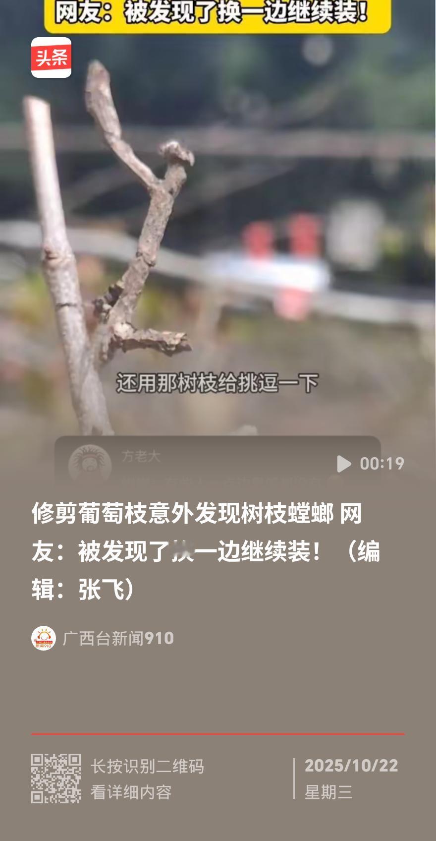 笑喷!螳螂装树枝被识破,淡定换姿势接着演,网友:3遍没看出破绽 广东大哥剪树