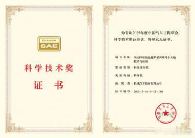 2025年10月,长城汽车《混动四驱智能越野系列乘用车关键技术与应用》项目,荣获中国汽车工程学会科学技术奖“科技进步奖特等奖”。这是该奖项设立30余年来首次授予混动技术,经李骏院士领衔的专家委员会严格评审,不仅是行业对长城原创技术能力的最高认可,更体现国家战略层面对混动技术创新的重视,凸显出长城汽车坚持“长期主义”、深耕自主创新的技术底蕴。