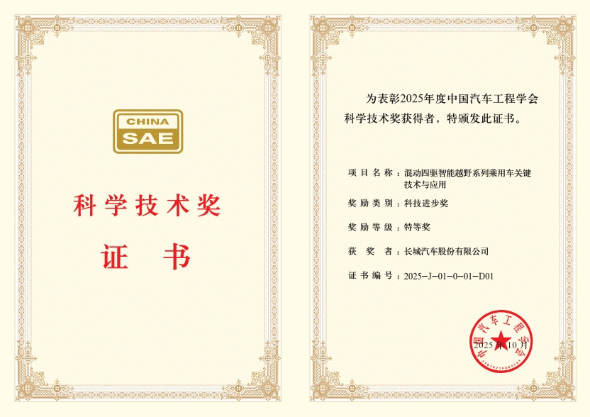 长城Hi4获科技进步奖特等奖