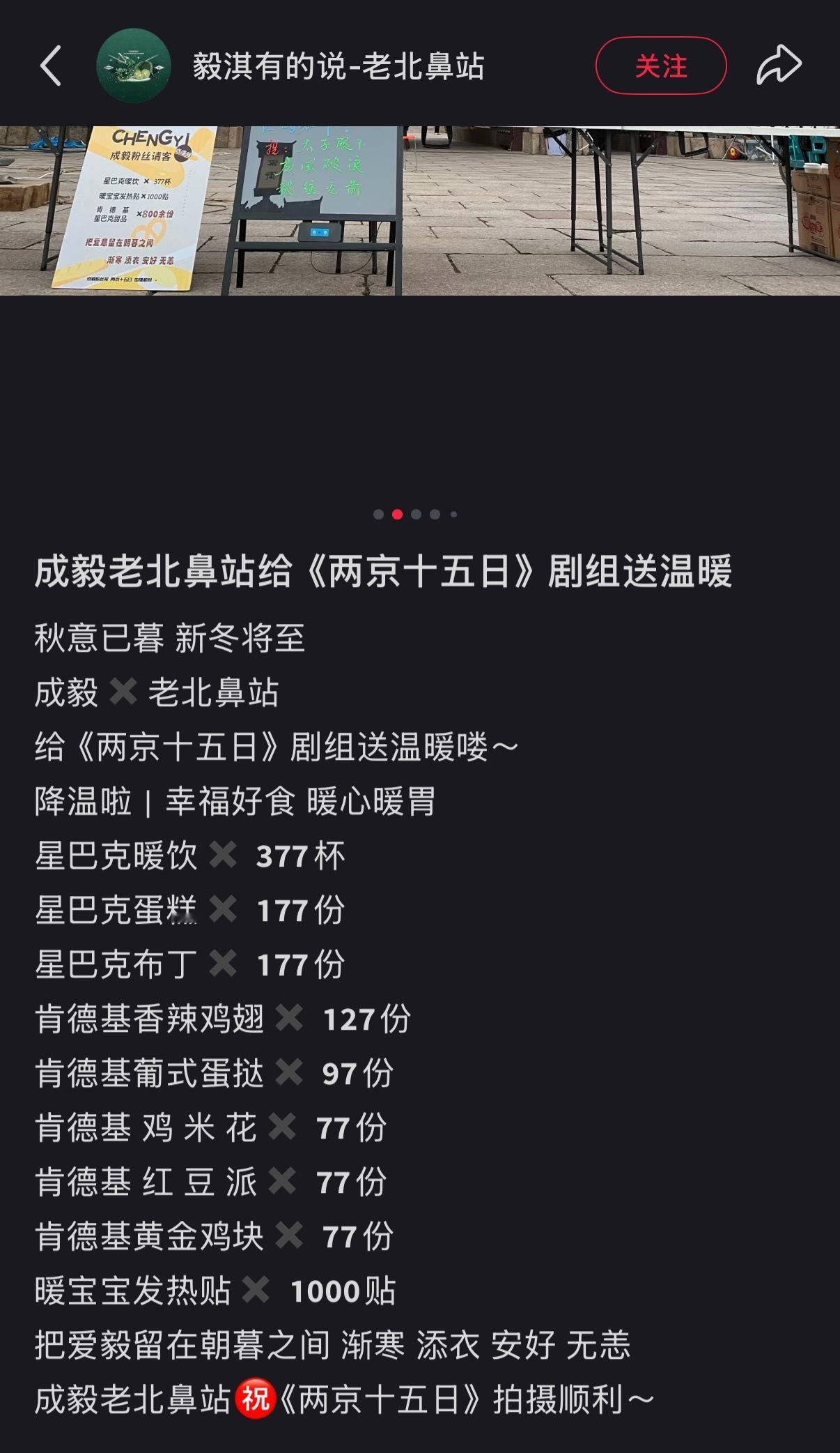 成毅老北鼻站给《两京十五日》剧组送温暖星巴克 肯德基 暖宝宝发热贴太温暖了[期待