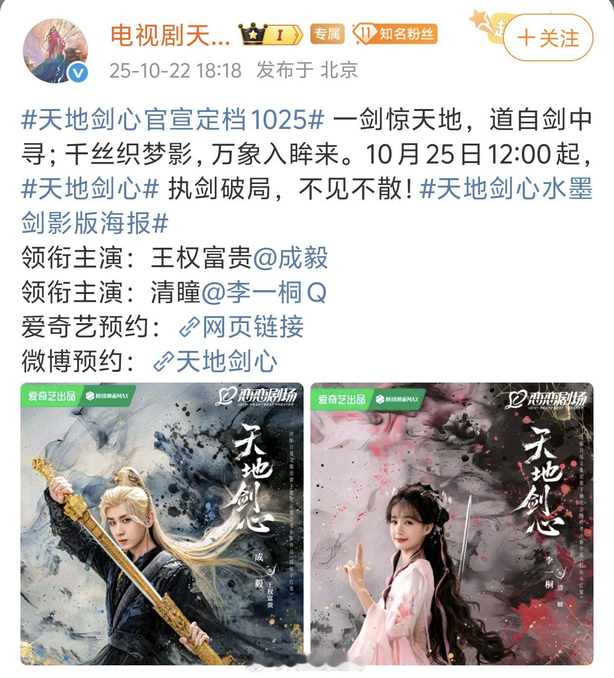 领衔主演:李一桐 饰 清瞳 天地剑心官宣定档1025