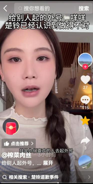 楚玲为自己曾经给甜歌皇后杨钰莹起过外号羊咩咩而道歉了,她说:“我最初直播时,提过她的名字,可是直播间的姐妹不让我提,说我蹭之类的,我就起了个可爱的外号,而且当时我叫孩子他爸也叫牛哞哞的。”楚玲说这番话时,的确也是小心翼翼了,连叫赖文峰也不敢叫老公了,只是叫孩子他爸,接着她又说:“我确实应该道歉,我可以给我身边的人起外号,不该给姐姐们都喜欢的人起外号,我在这里真诚的道歉。”看起来,楚玲真的收敛了很多,说话的语气也不那么狂了。唉,早知如此何必当初呢?